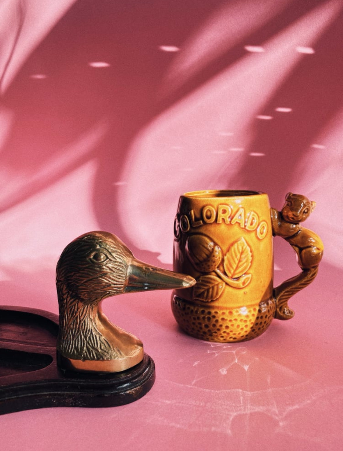 Vintage MCM Brass Duck & Wood Valet / Throw Tray