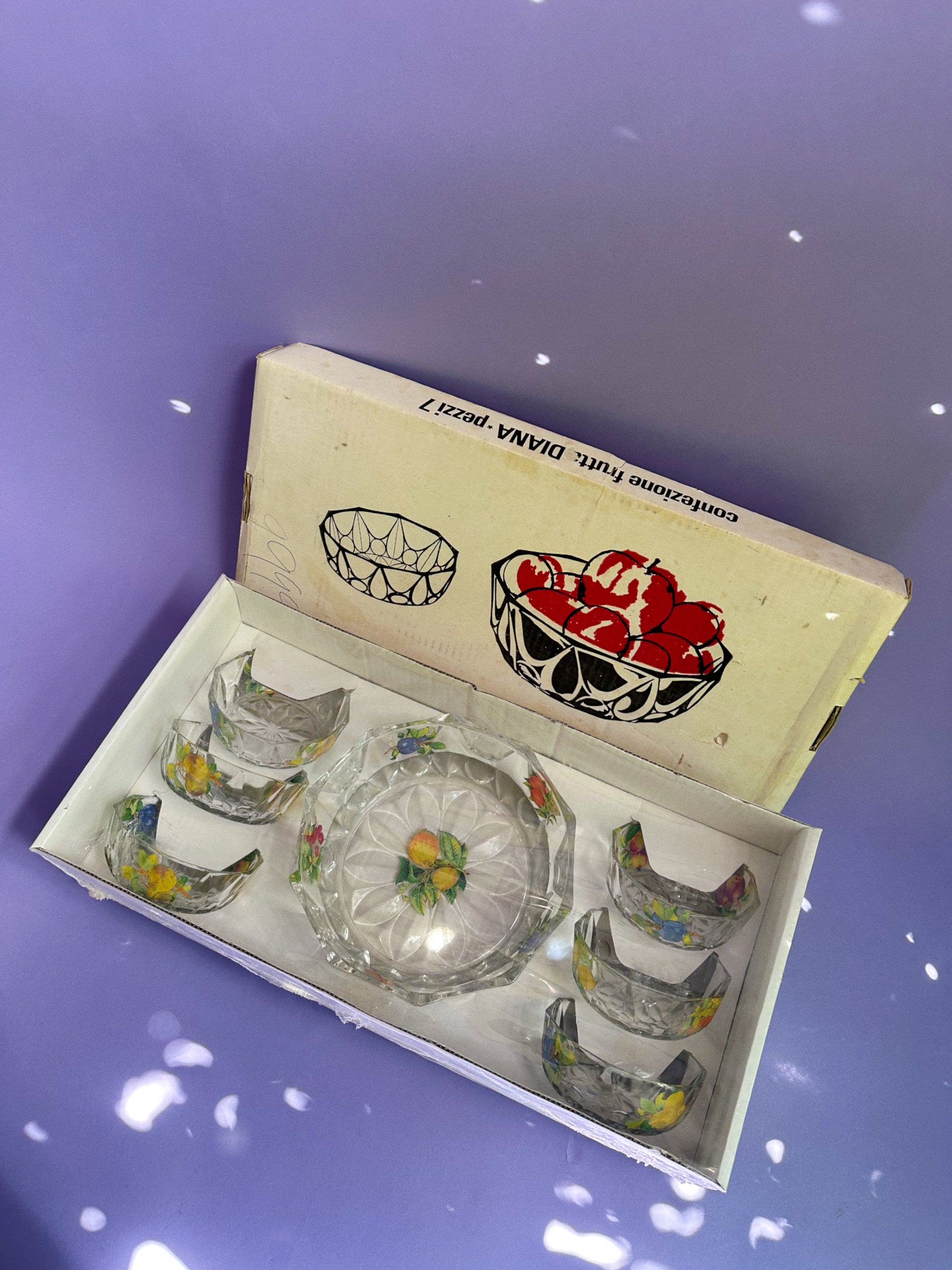 Vintage MCM Glass Serving Bowl And Side Bowls In Original Box