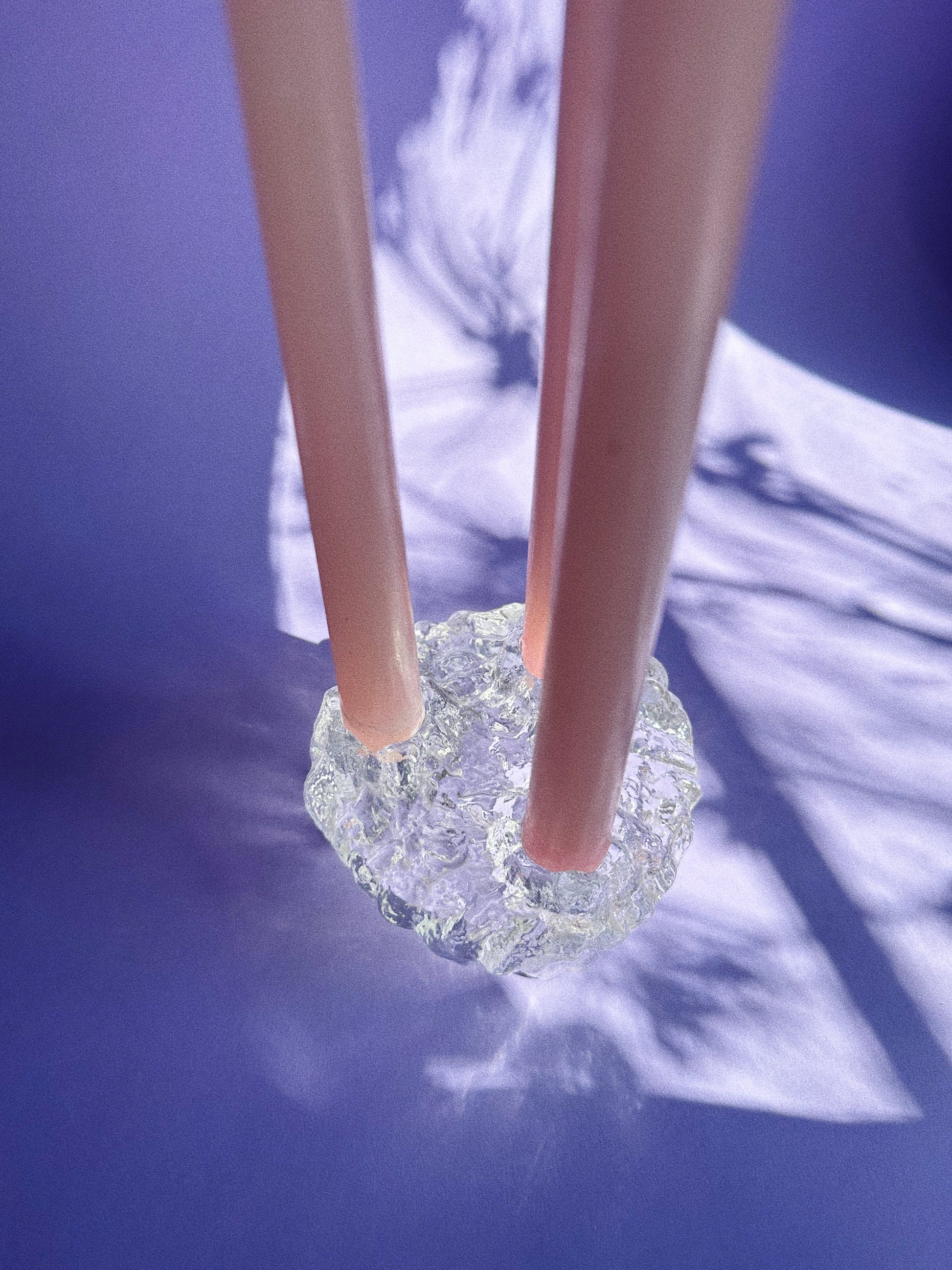 Vintage MCM L.E. Smith Reversible Crystal Ice Candle Holder