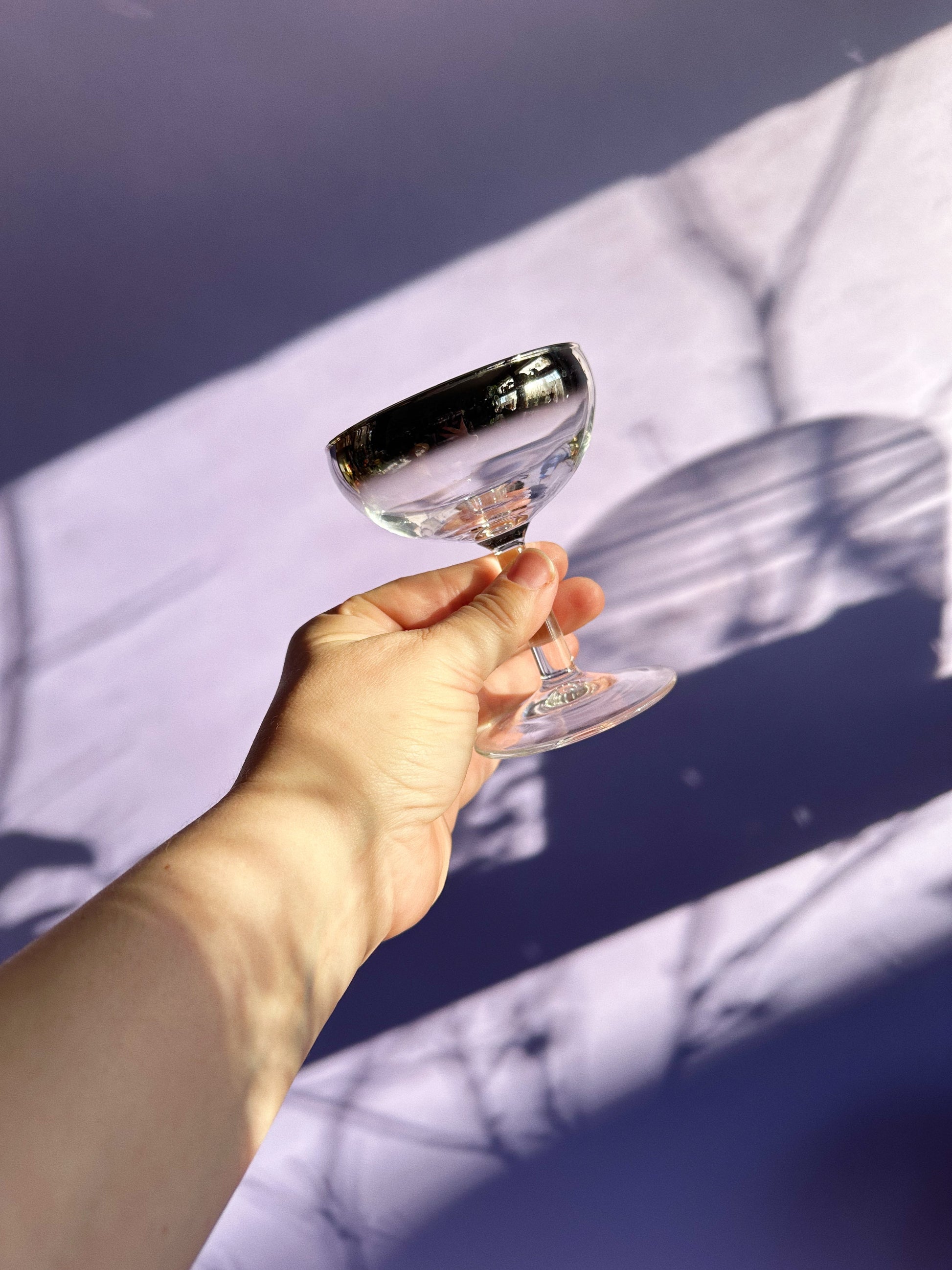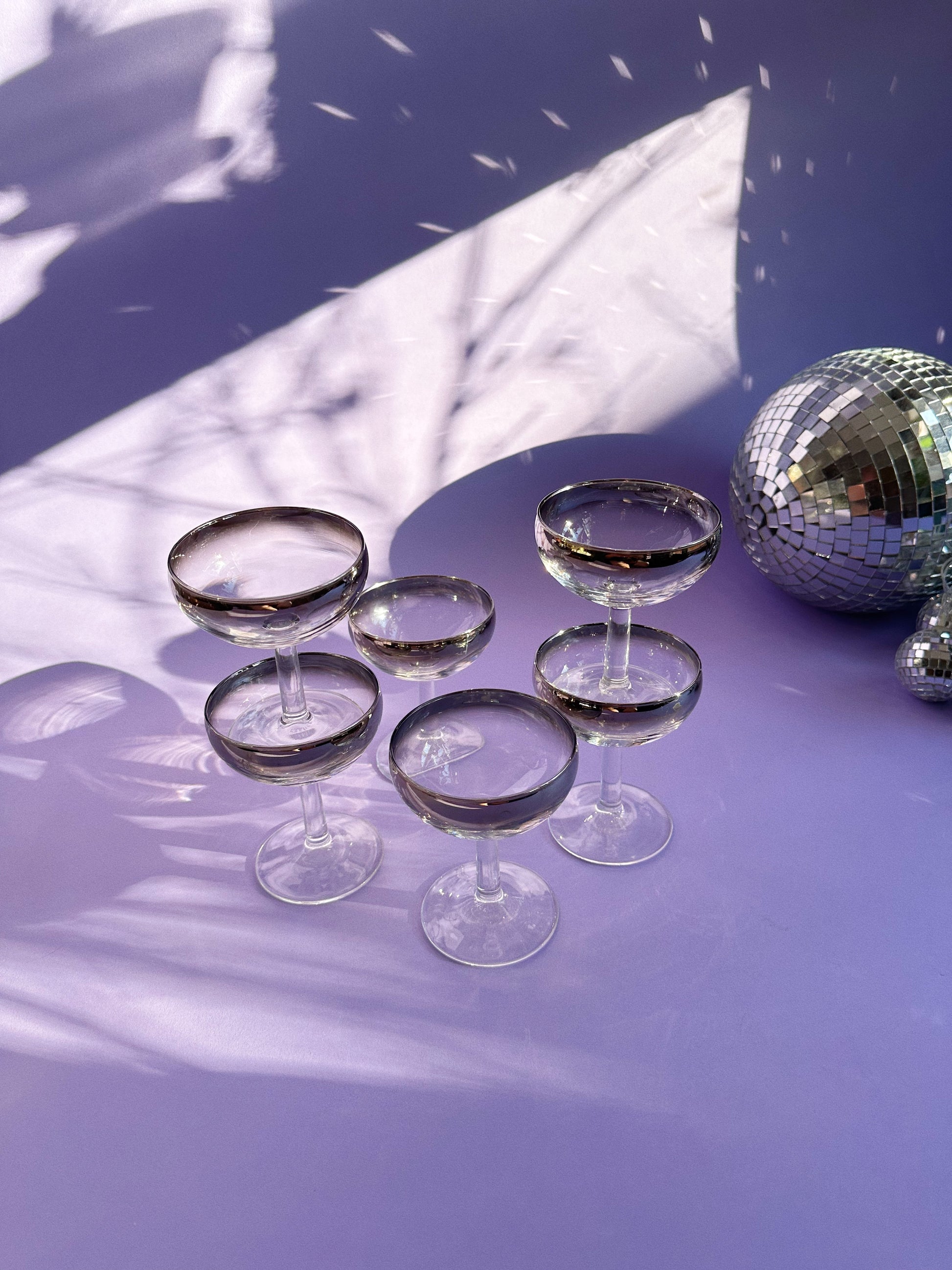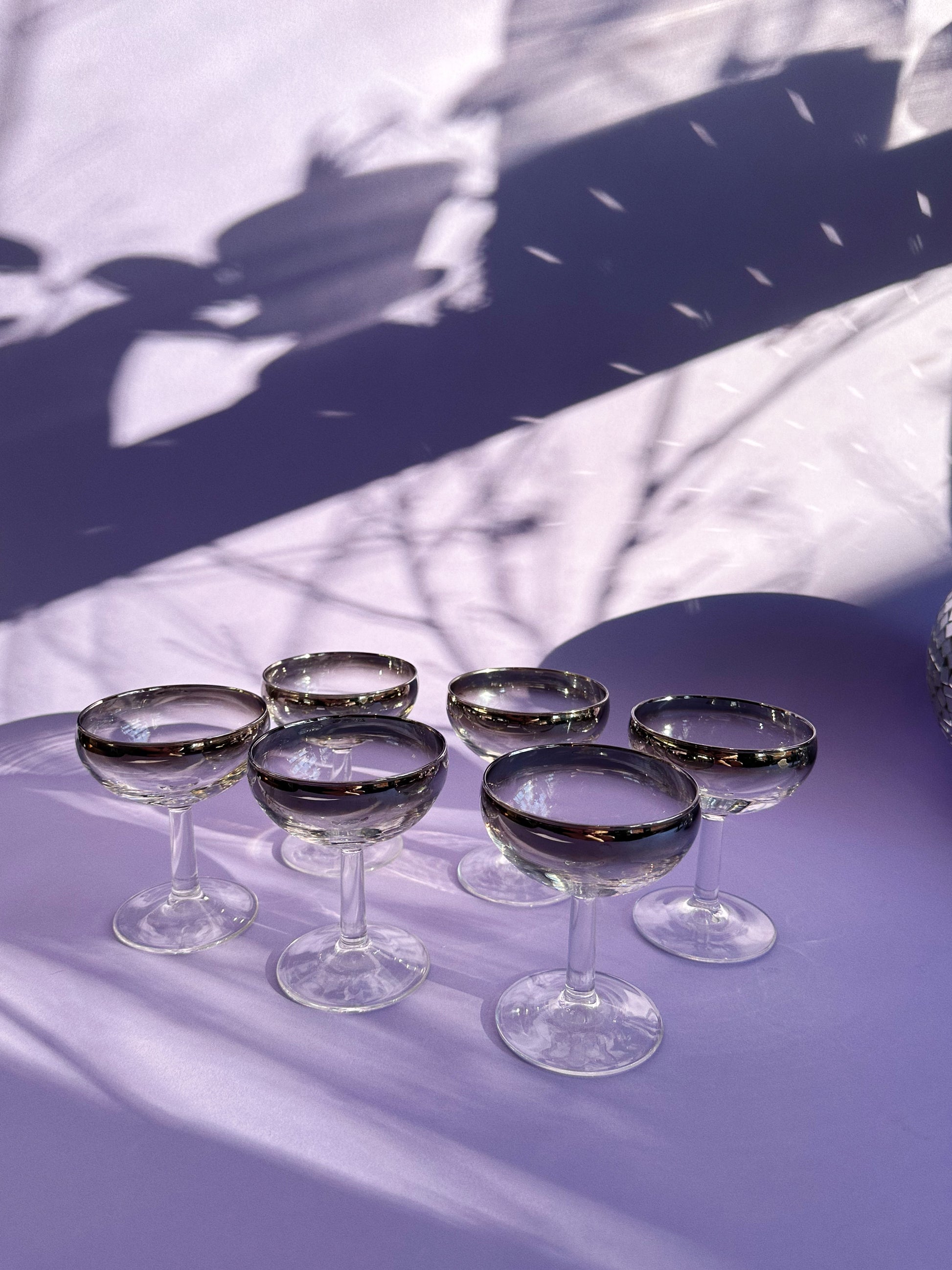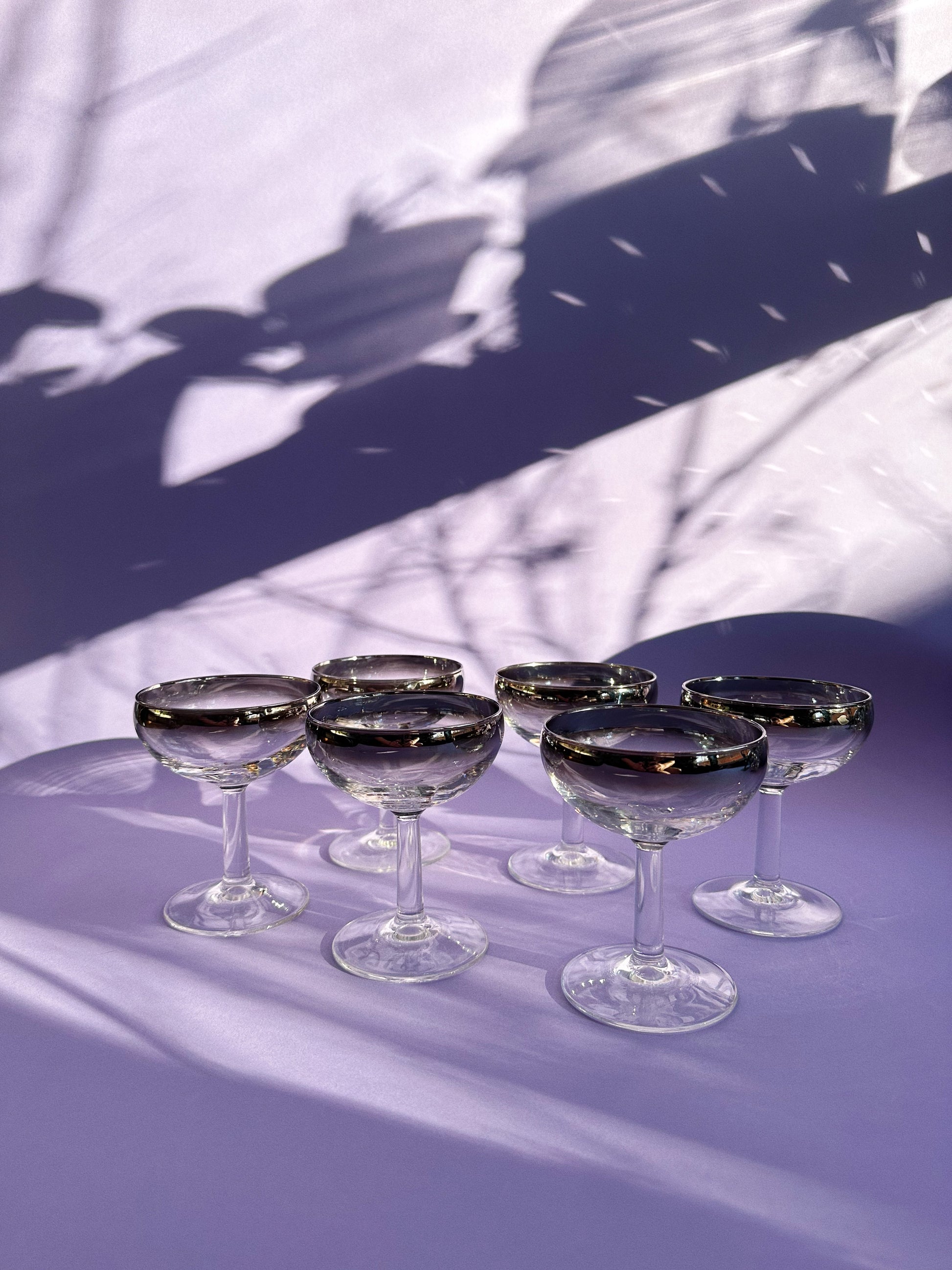 Vintage MCM Silver Ombré Luminarc Champagne Coupe Glasses Barware France