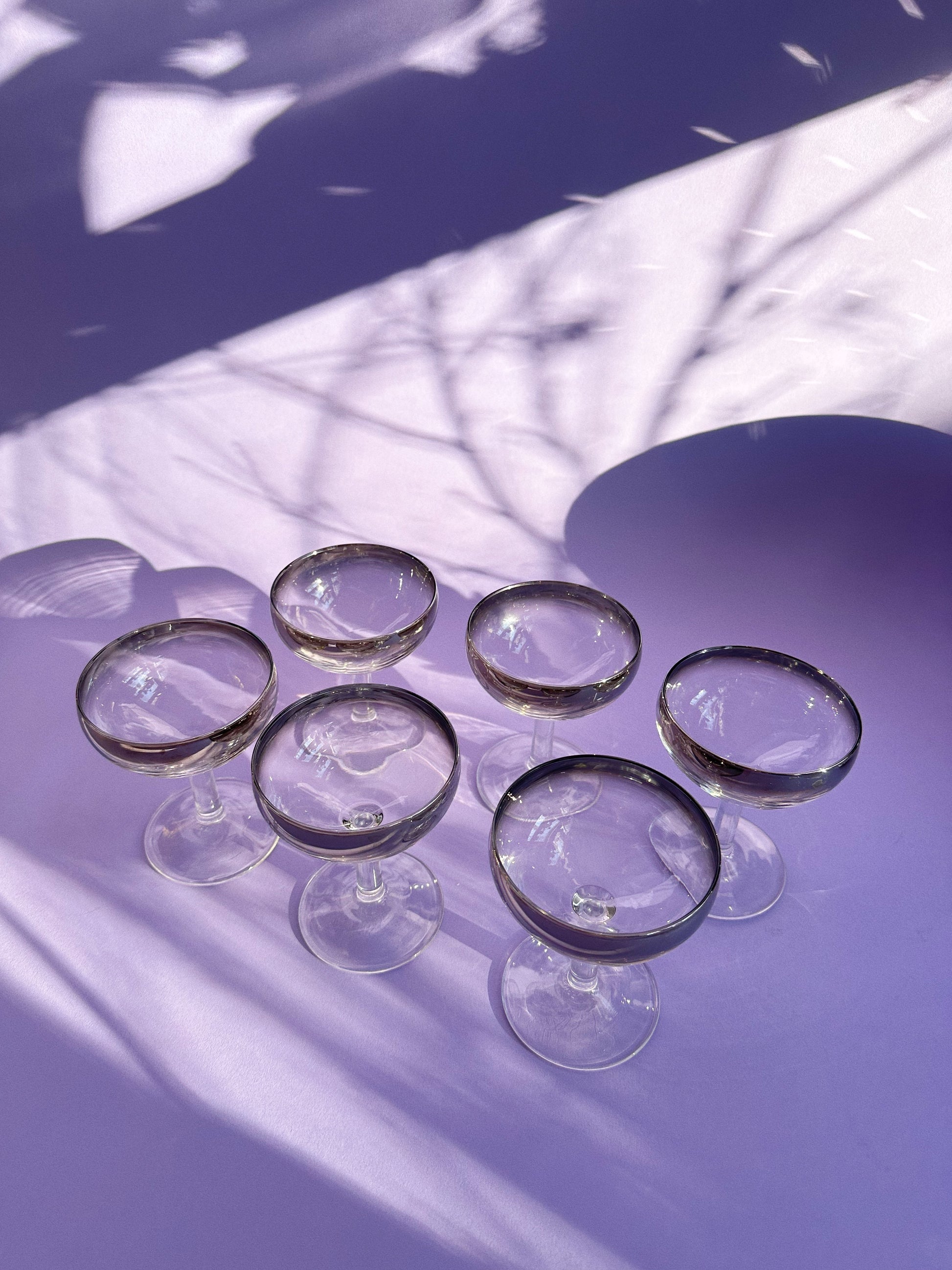 beautiful set of 6 france luminarc silver ombré champagne coupes.