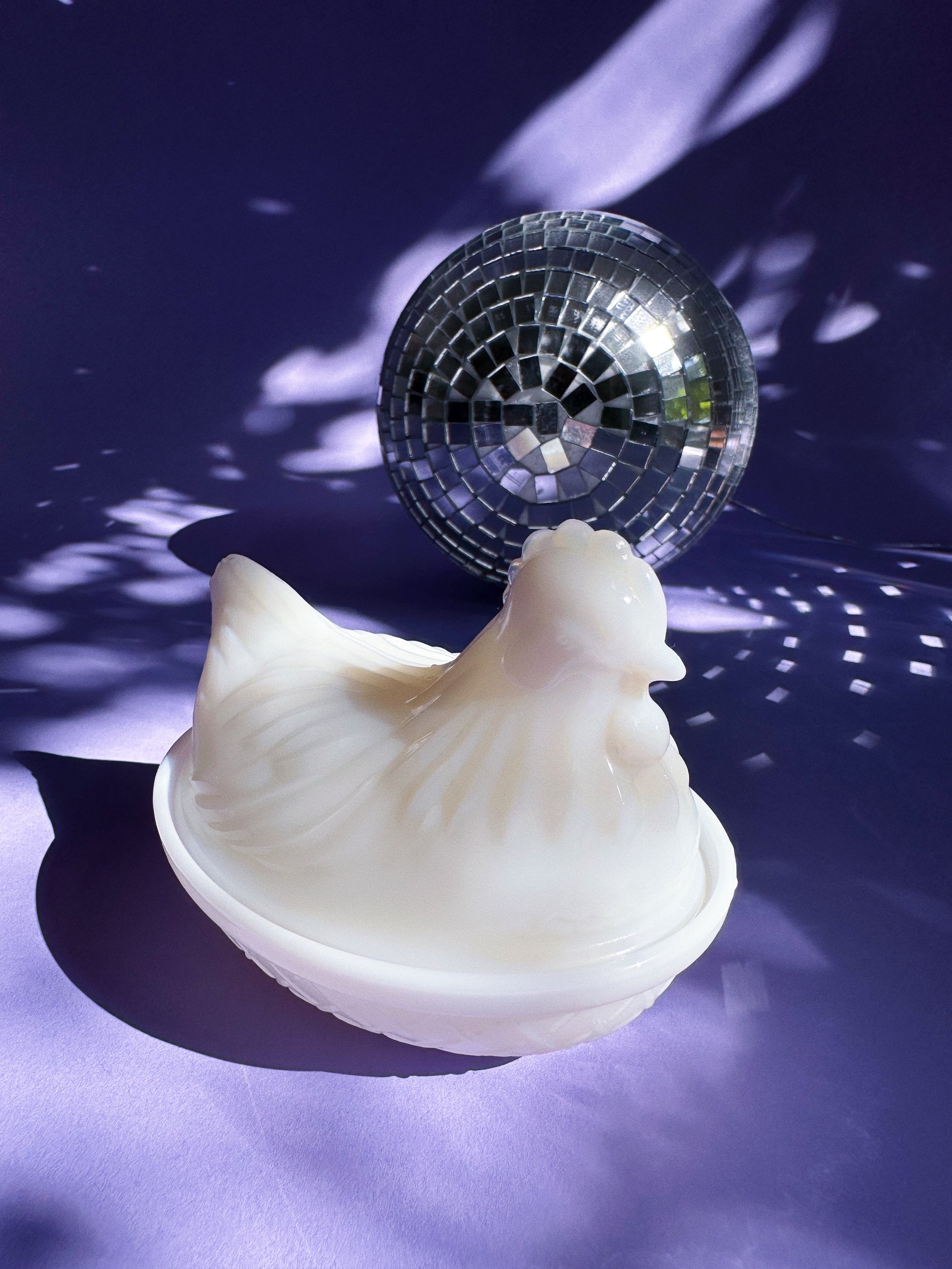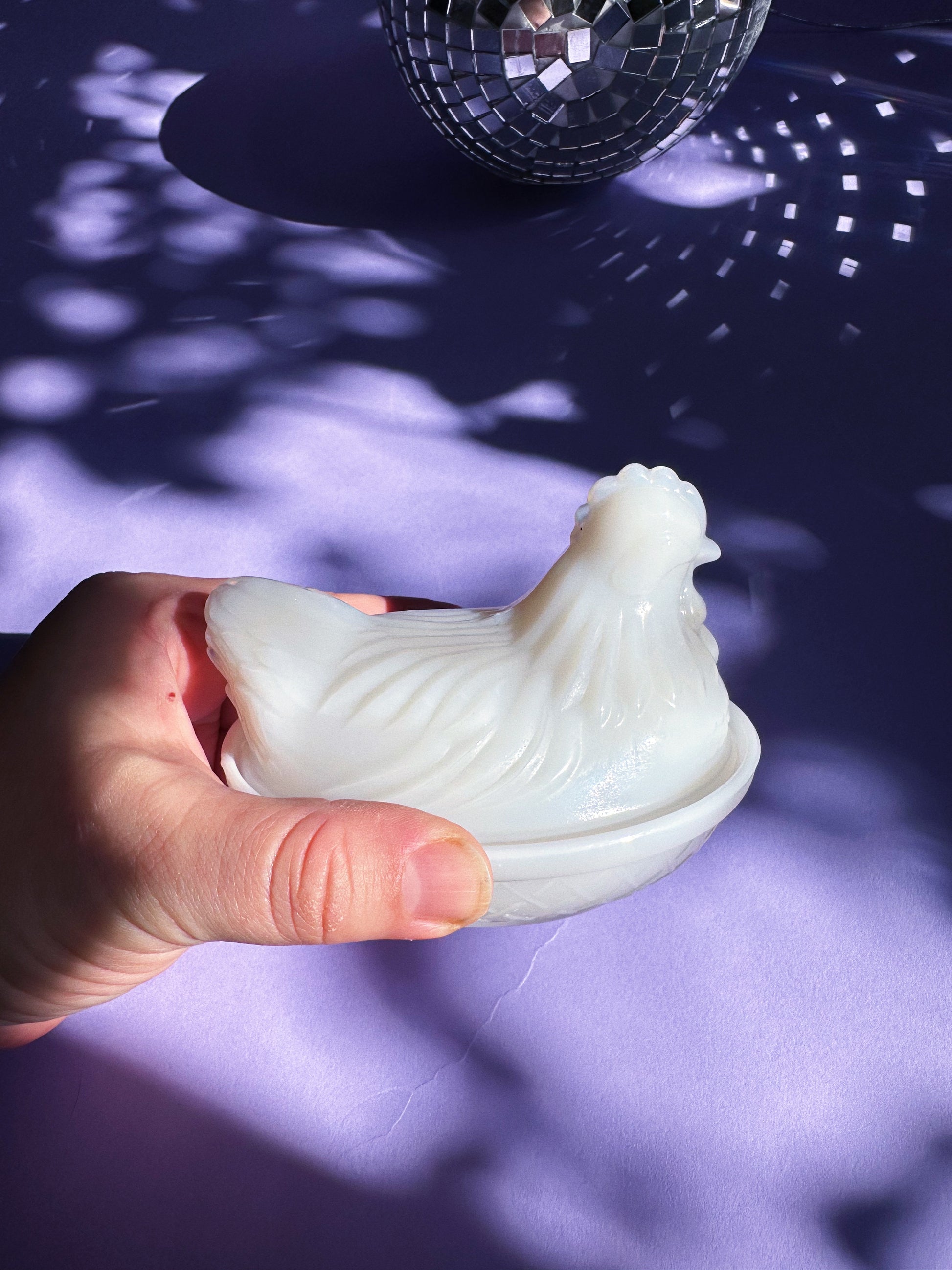 4.5” milk glass lidded hen dish