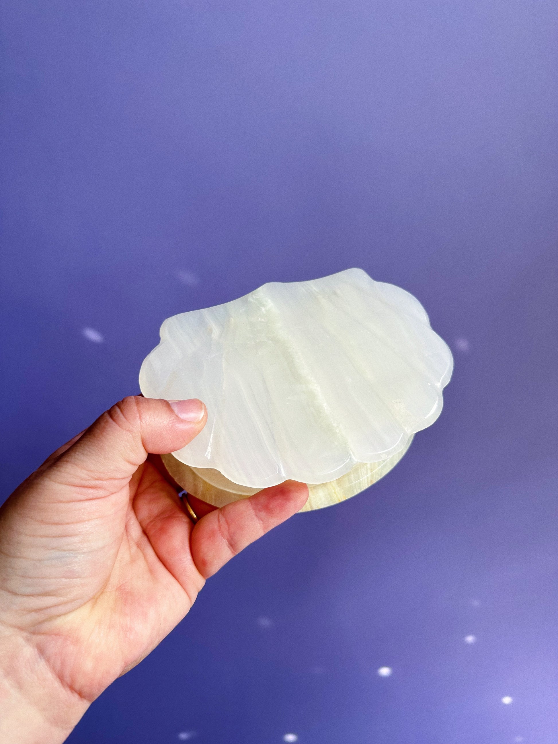 Gorgeous Vintage Onyx Stone Clam Shell Trinket/Jewlery Box