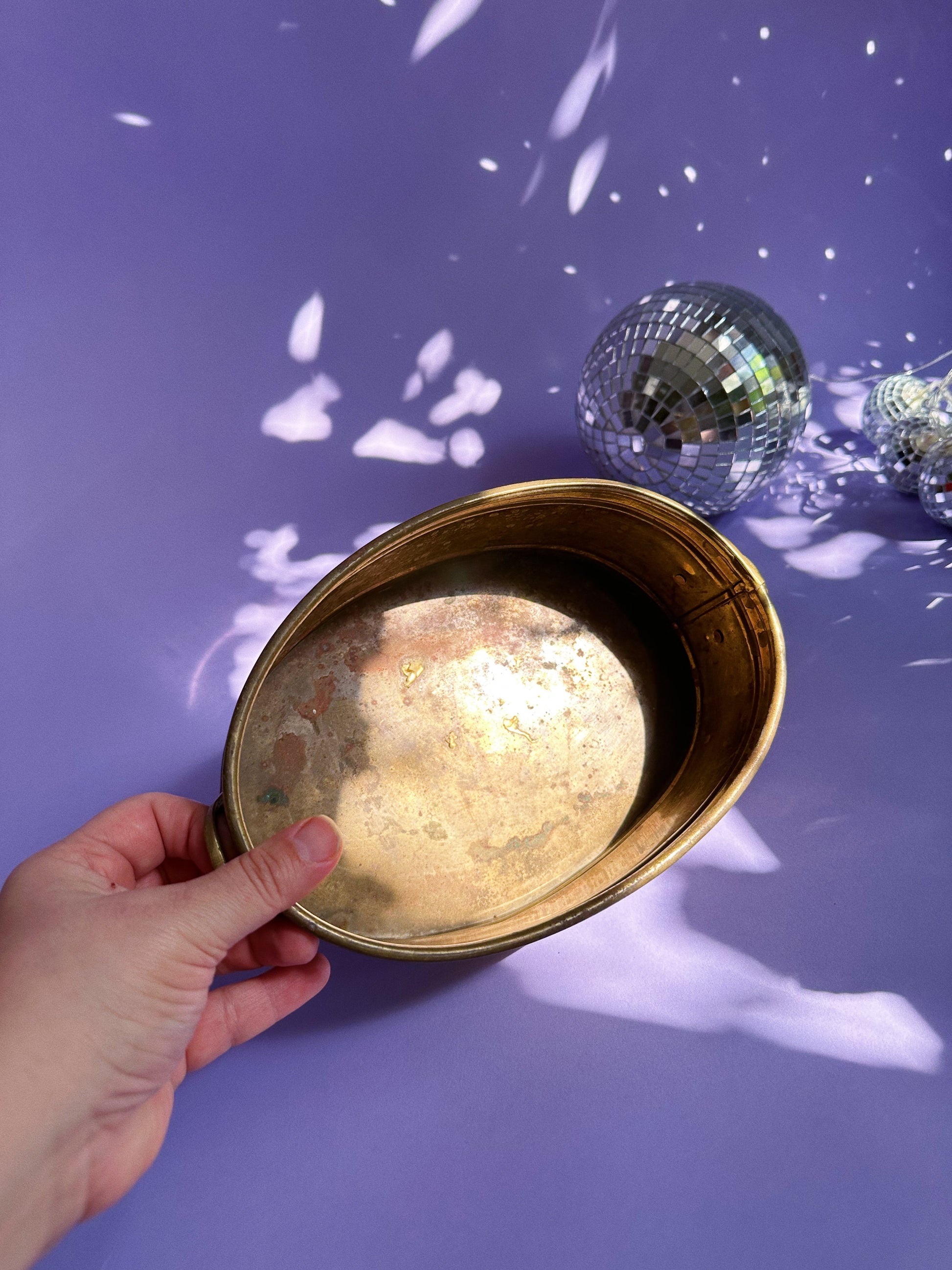 Vintage Oval Brass Planter w Handles