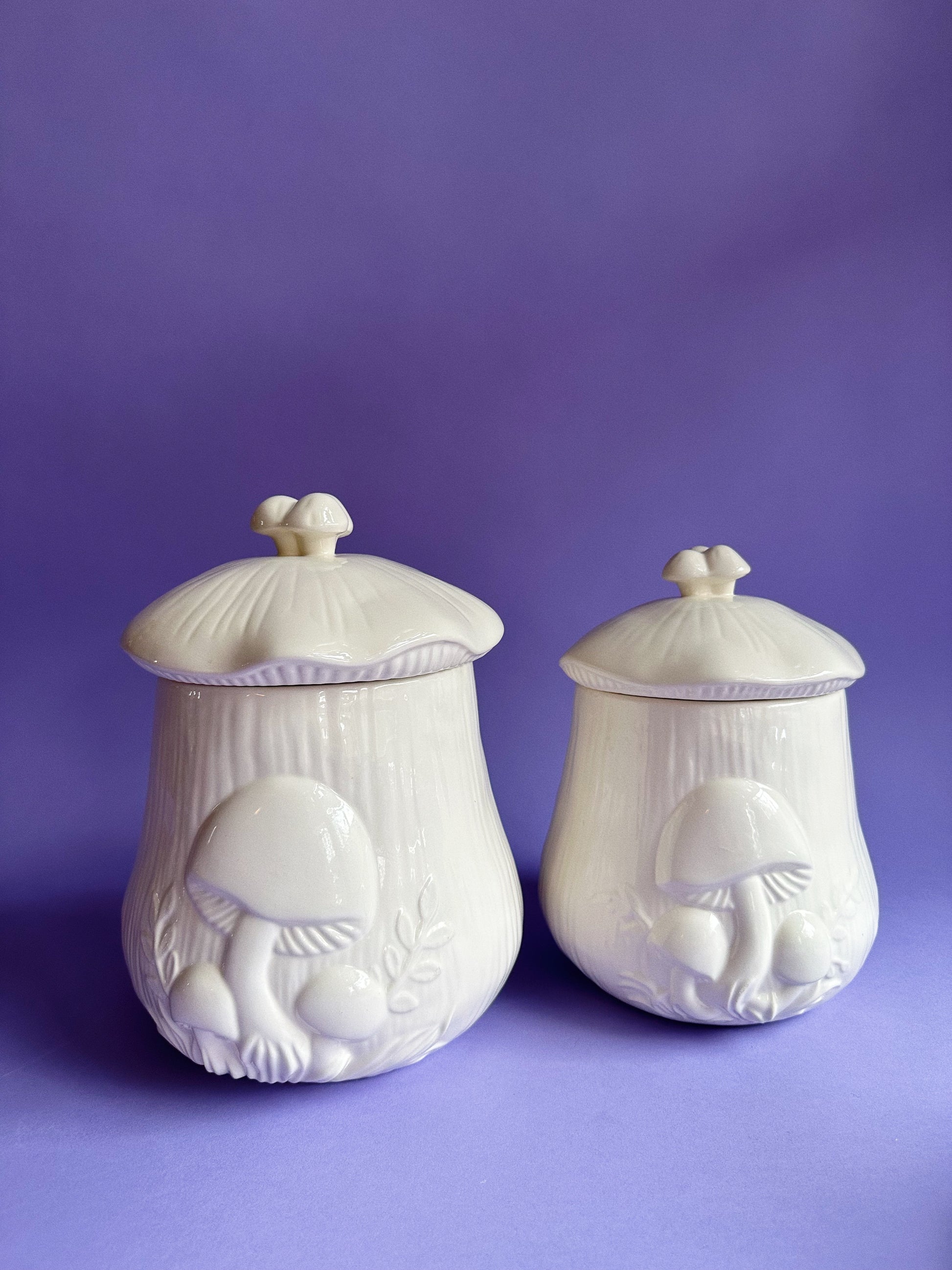 Vintage Pair of Mushroom Ceramic Arnels Kitchen Canisters