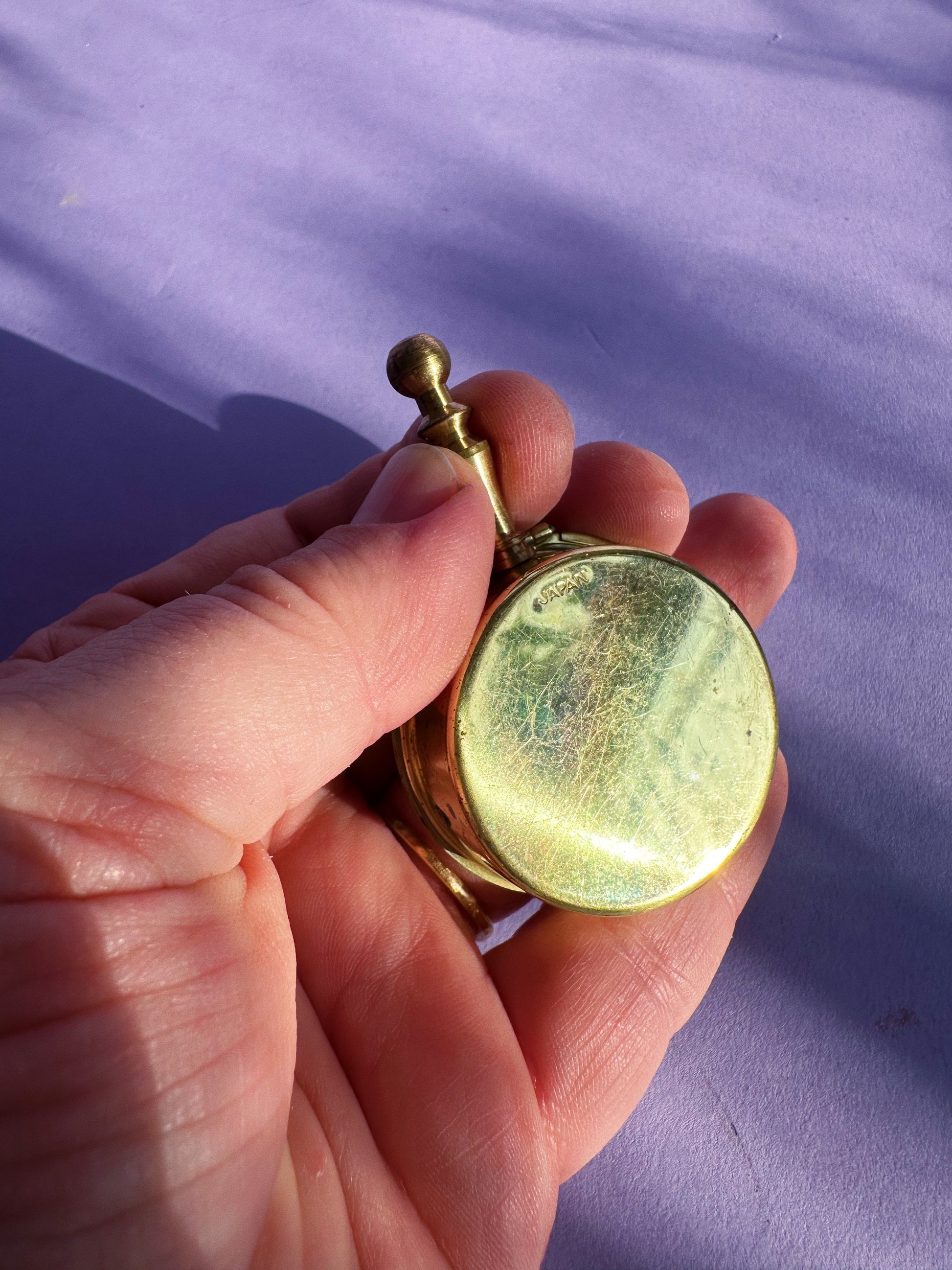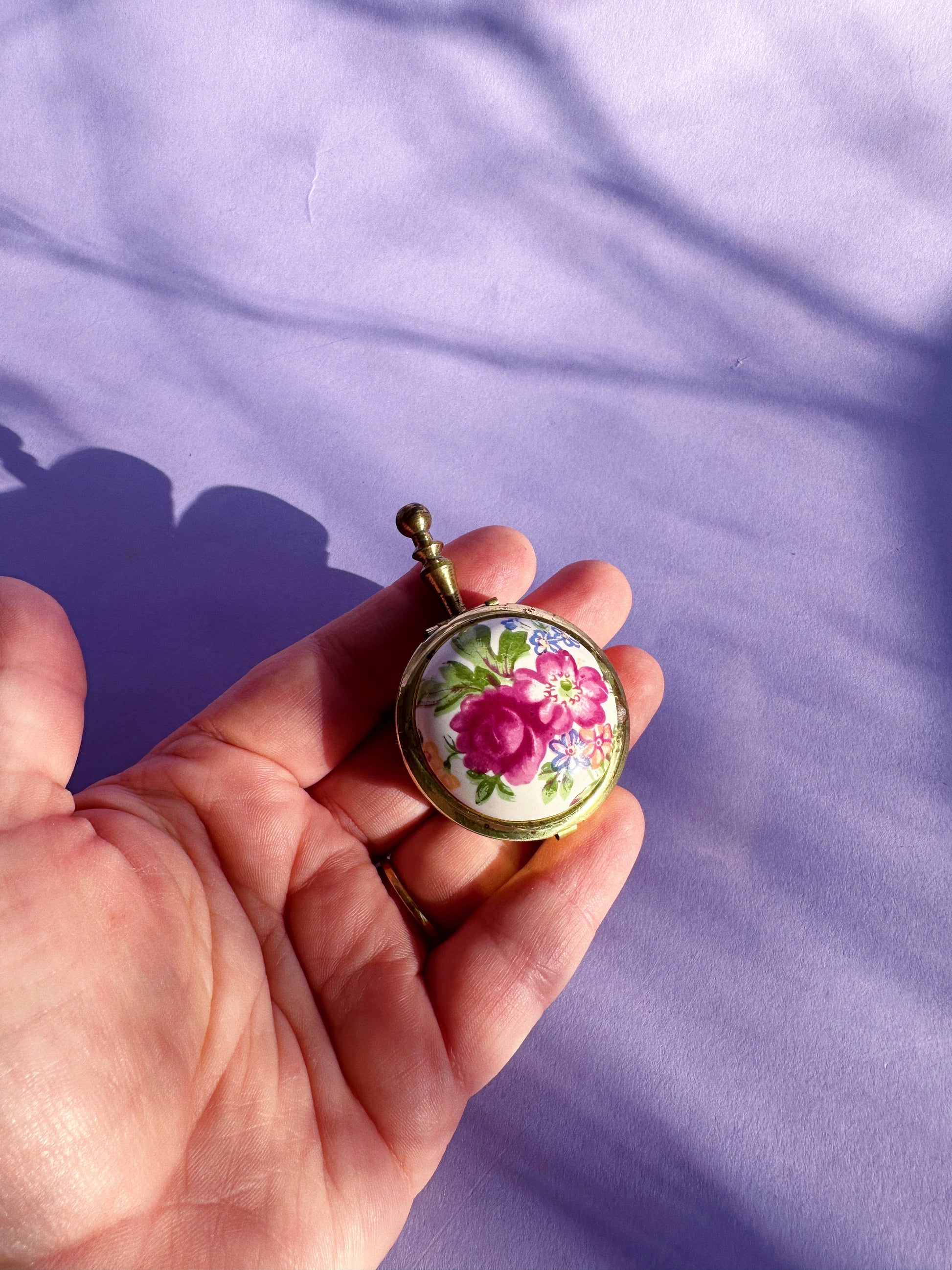 Vintage Personal Hand Held Ashtray Floral Pattern Motif Spring Lock Gold Tone