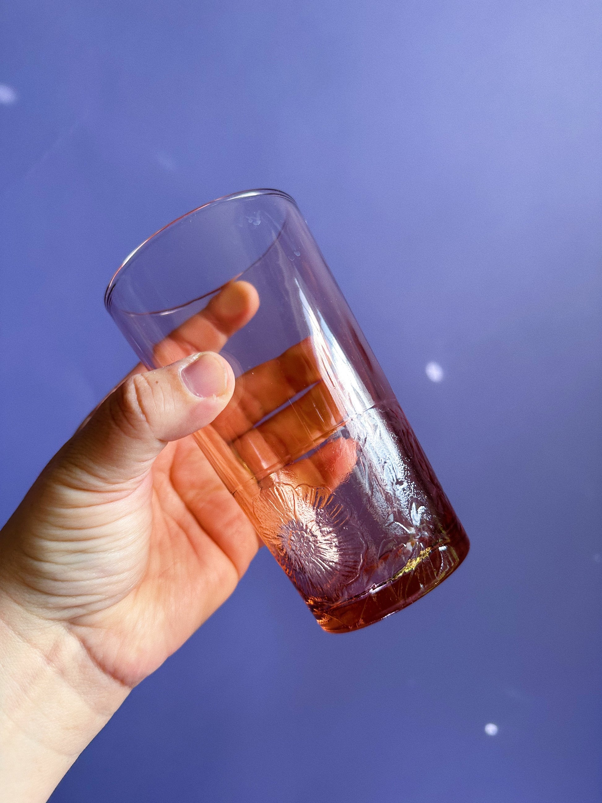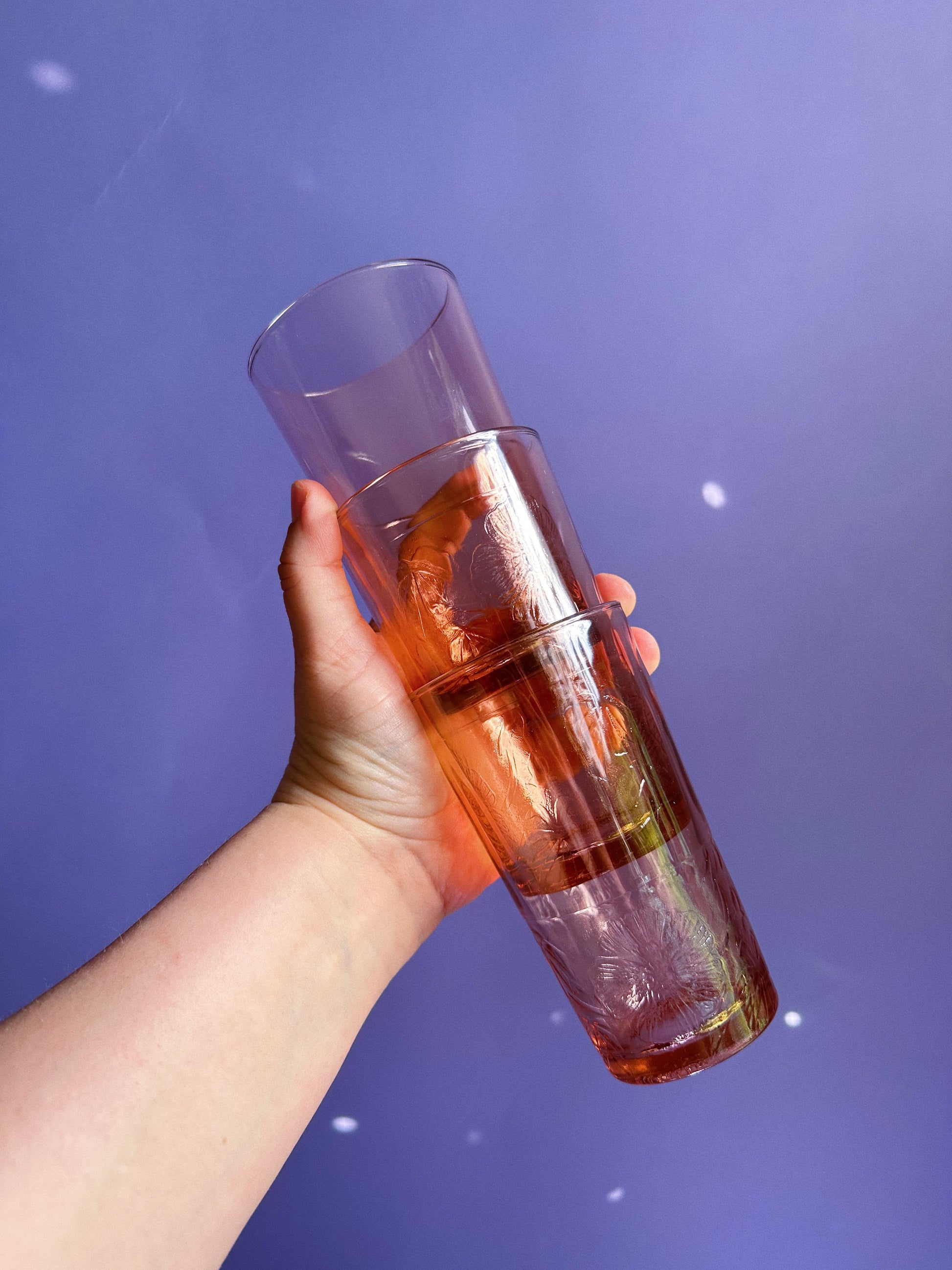Vintage Pink Highball Glasses KIG Pressed Floral Design, Set of 4