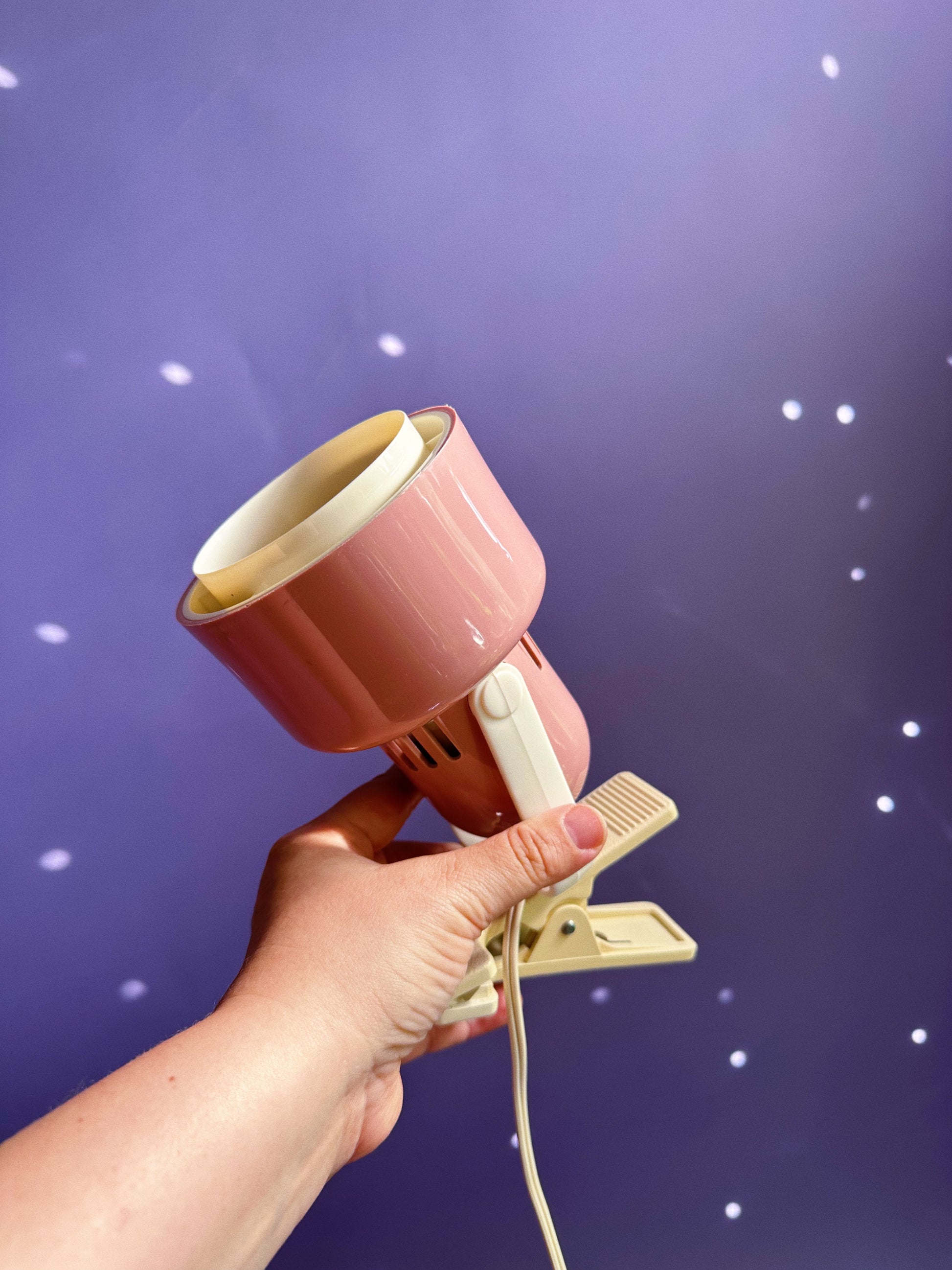Vintage Pink + White Molded Plastic Clamp Task Lamp, Circa 1980s