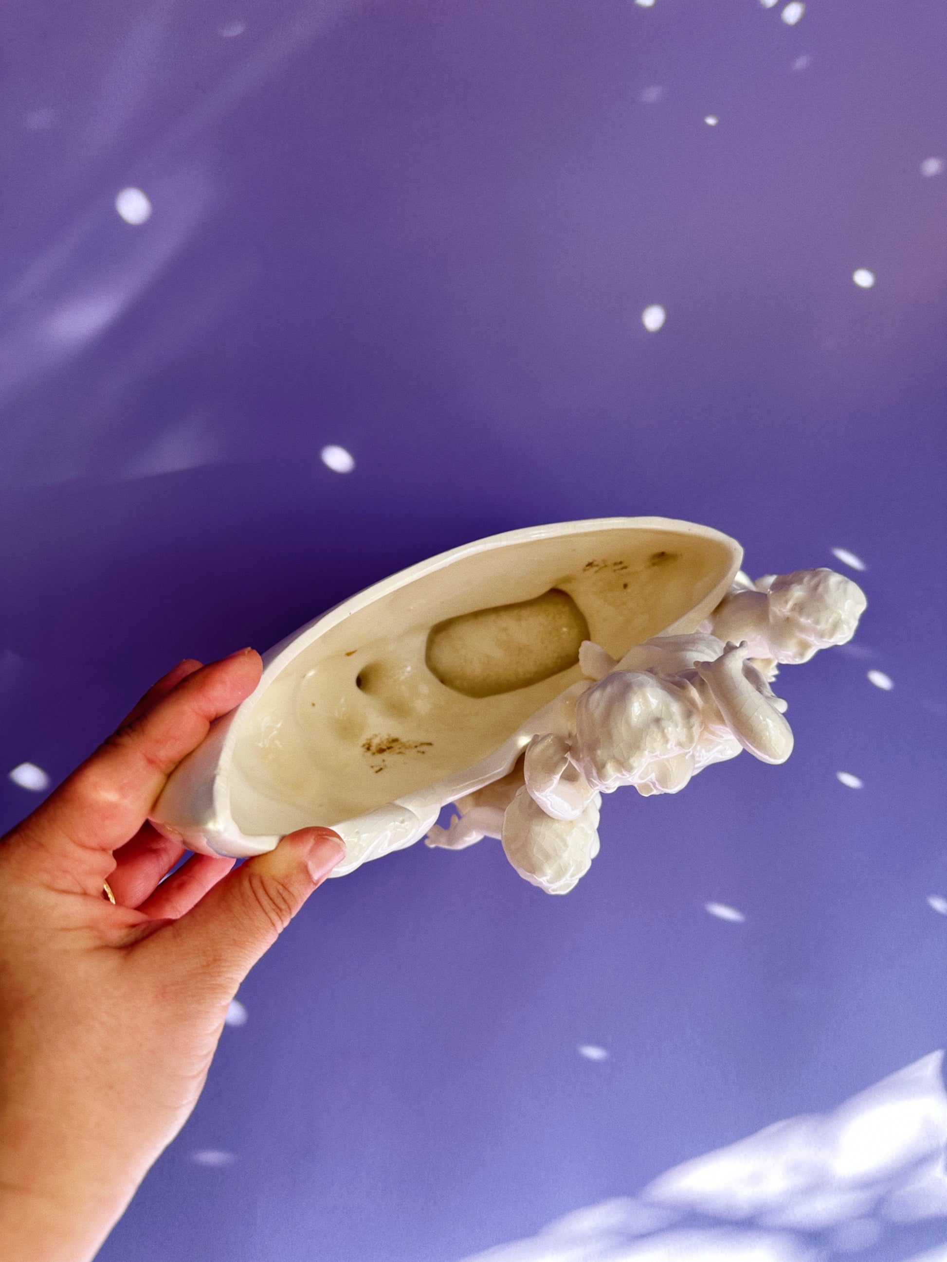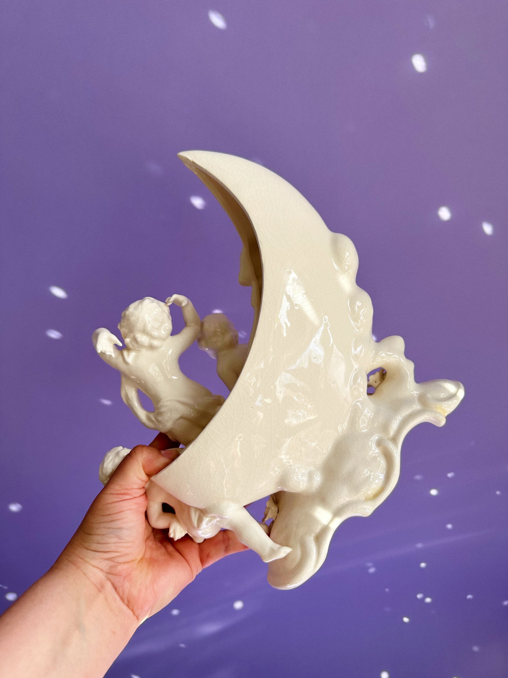Vintage Porcelain Moon & Cherubs Planter / Vase