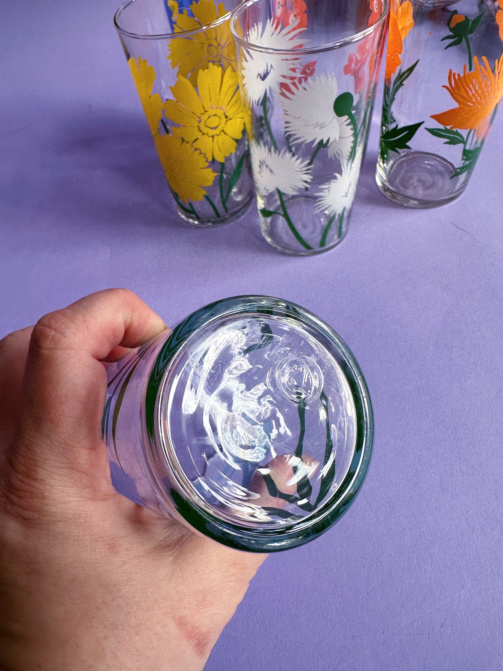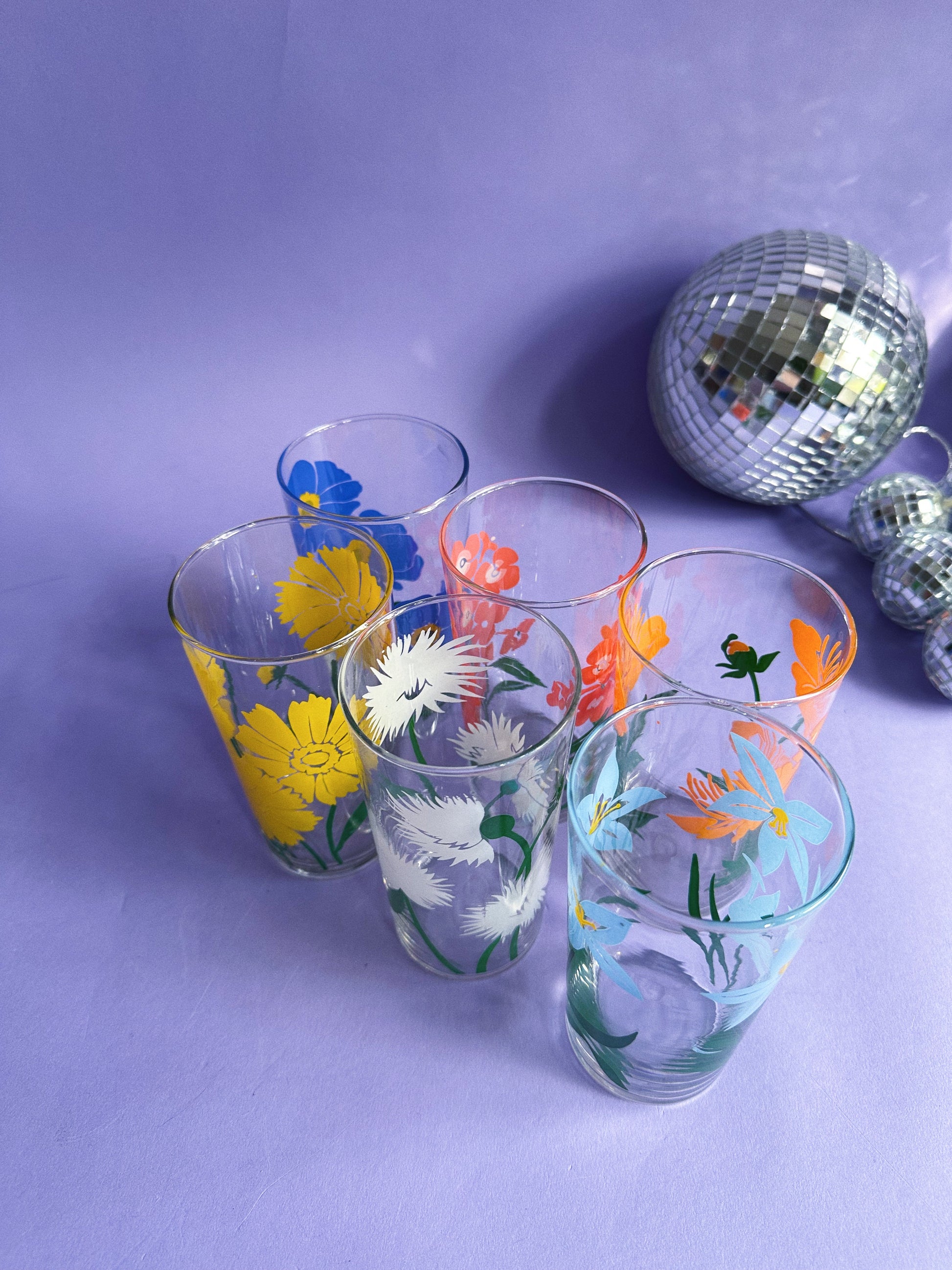 Vintage Set of 6 Libbey Flower Tall Glass Tumblers