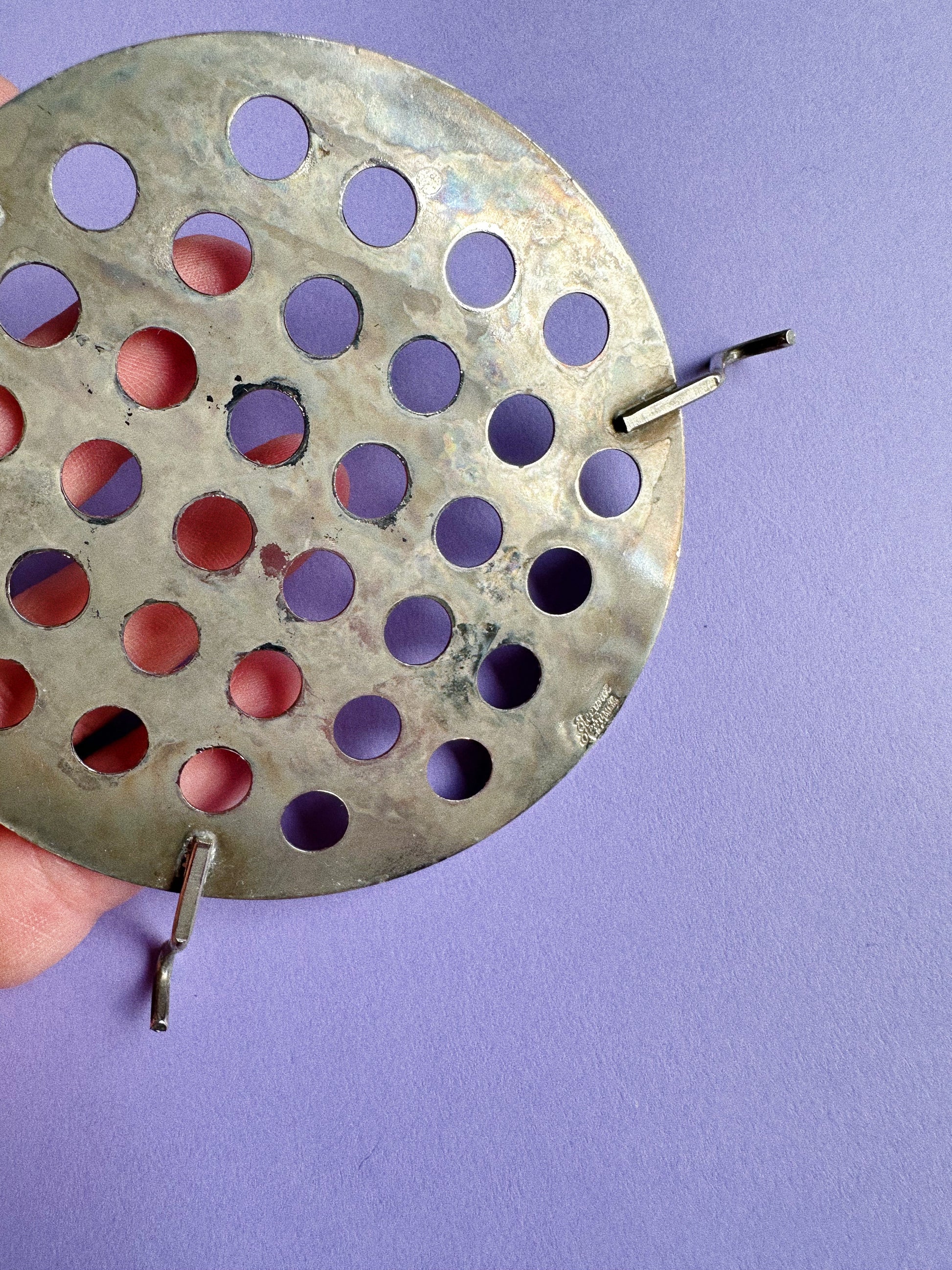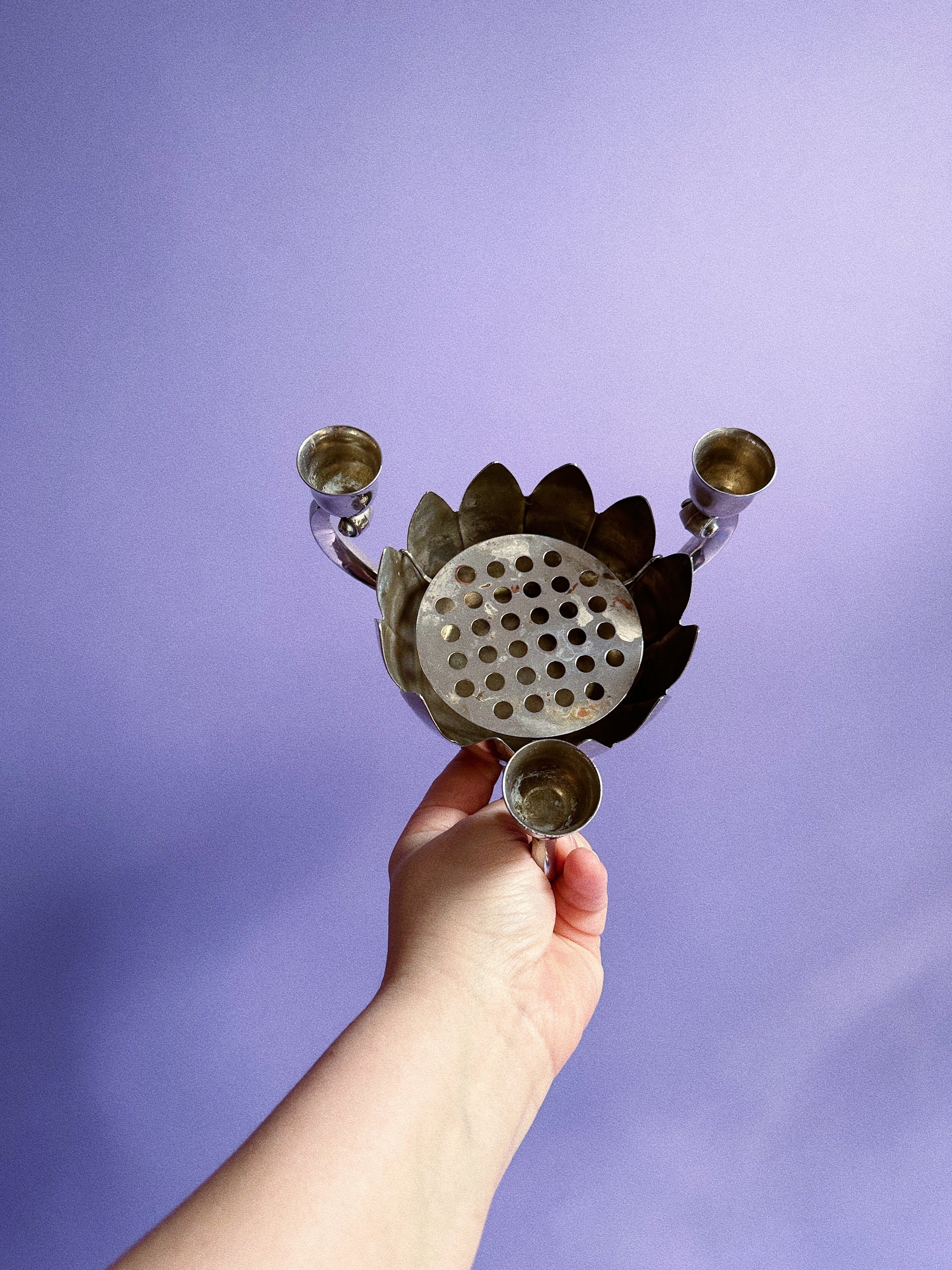 Gorgeous silver plated flower frog and candle holder.