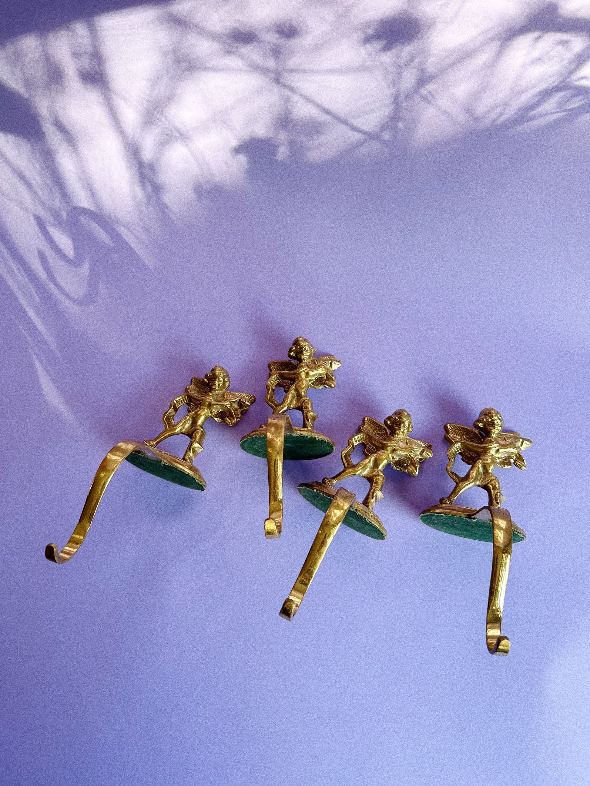 Beautiful set of 4 solid brass cherub / angel hangers for your mantlepiece.