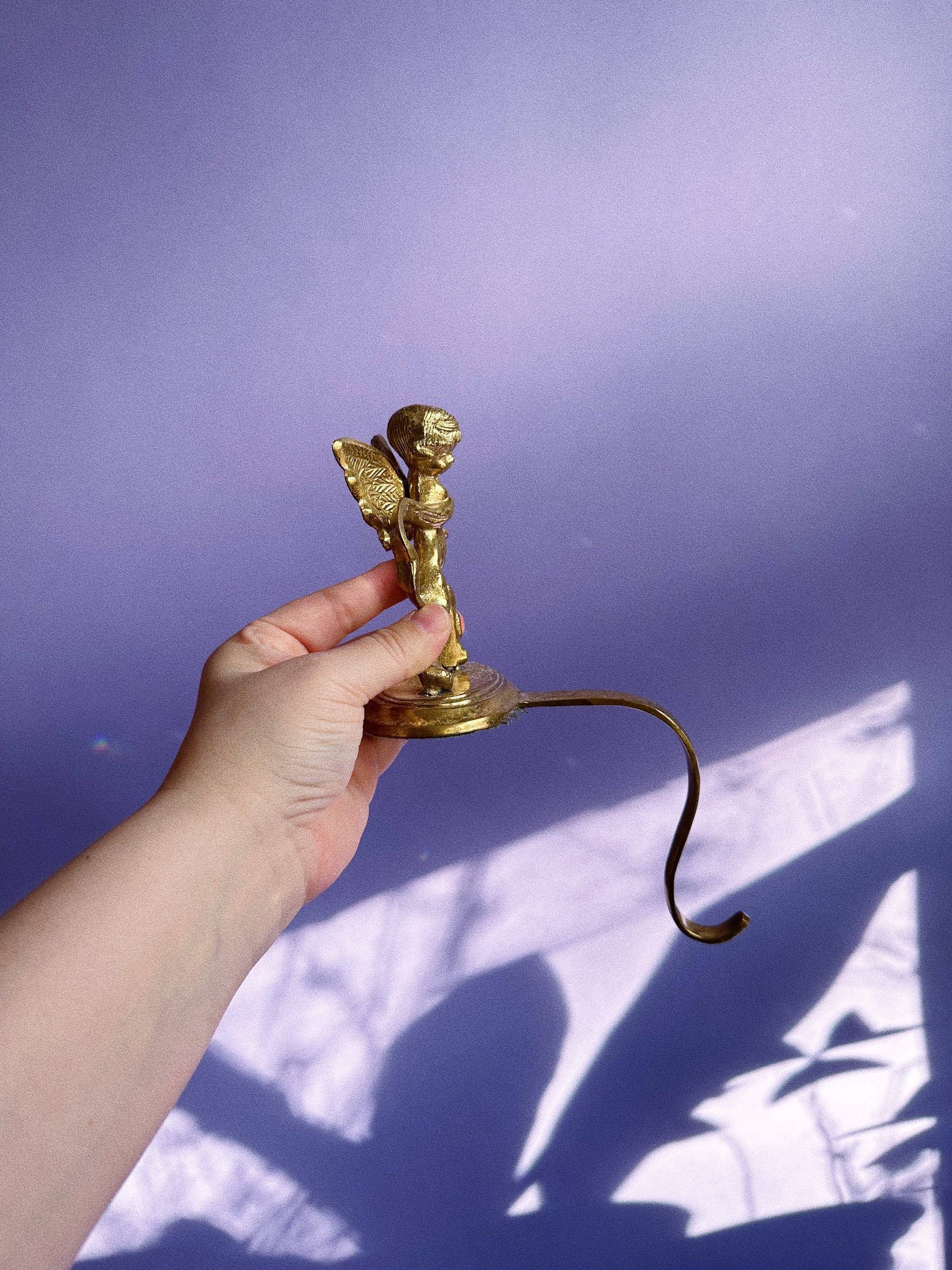 Vintage Solid Brass Cherub Stocking Mantlepiece Hangers