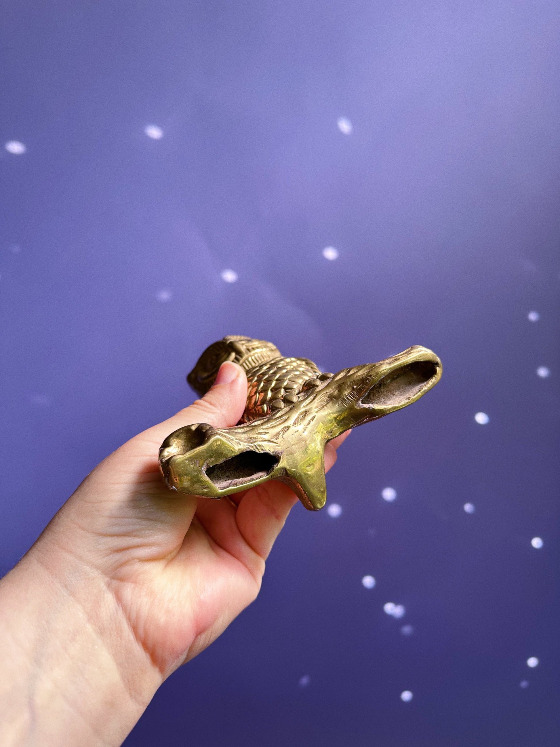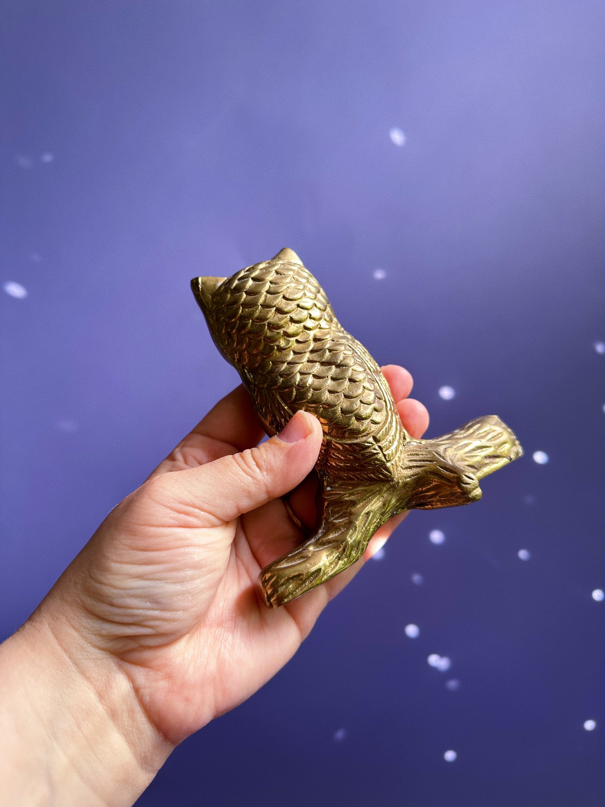 Vintage Solid Brass Hoot Owl on Tree Branch Paper Weight