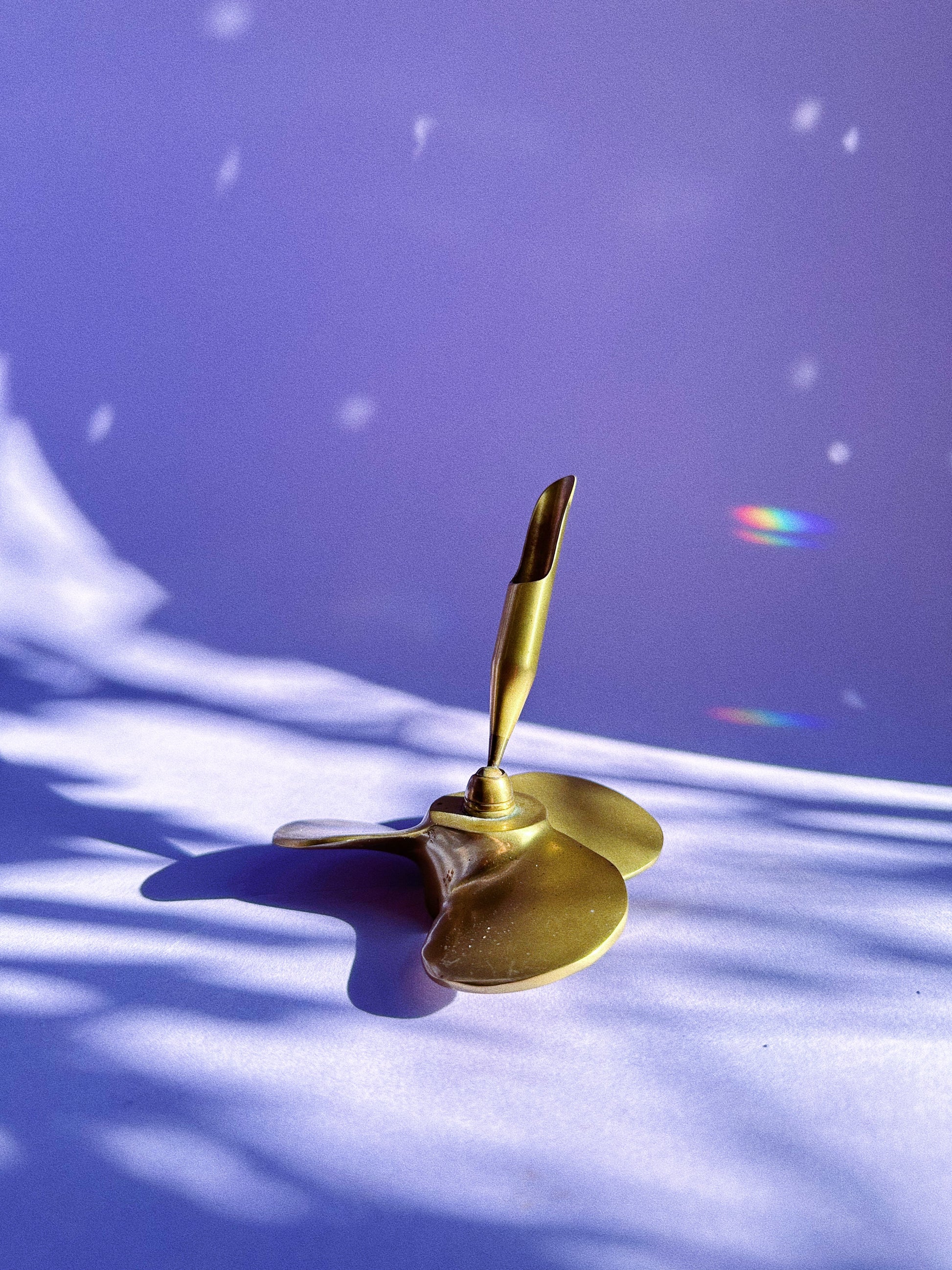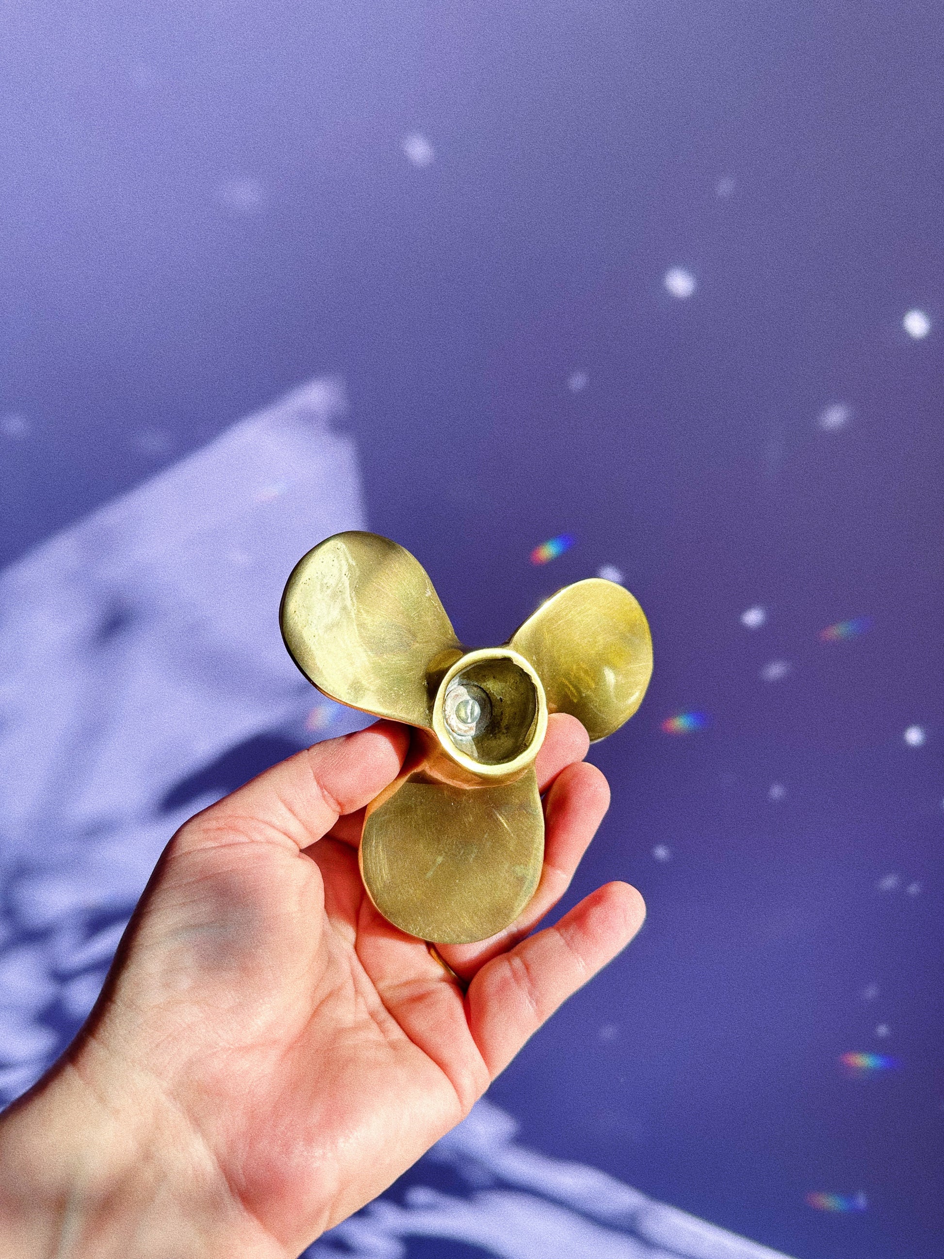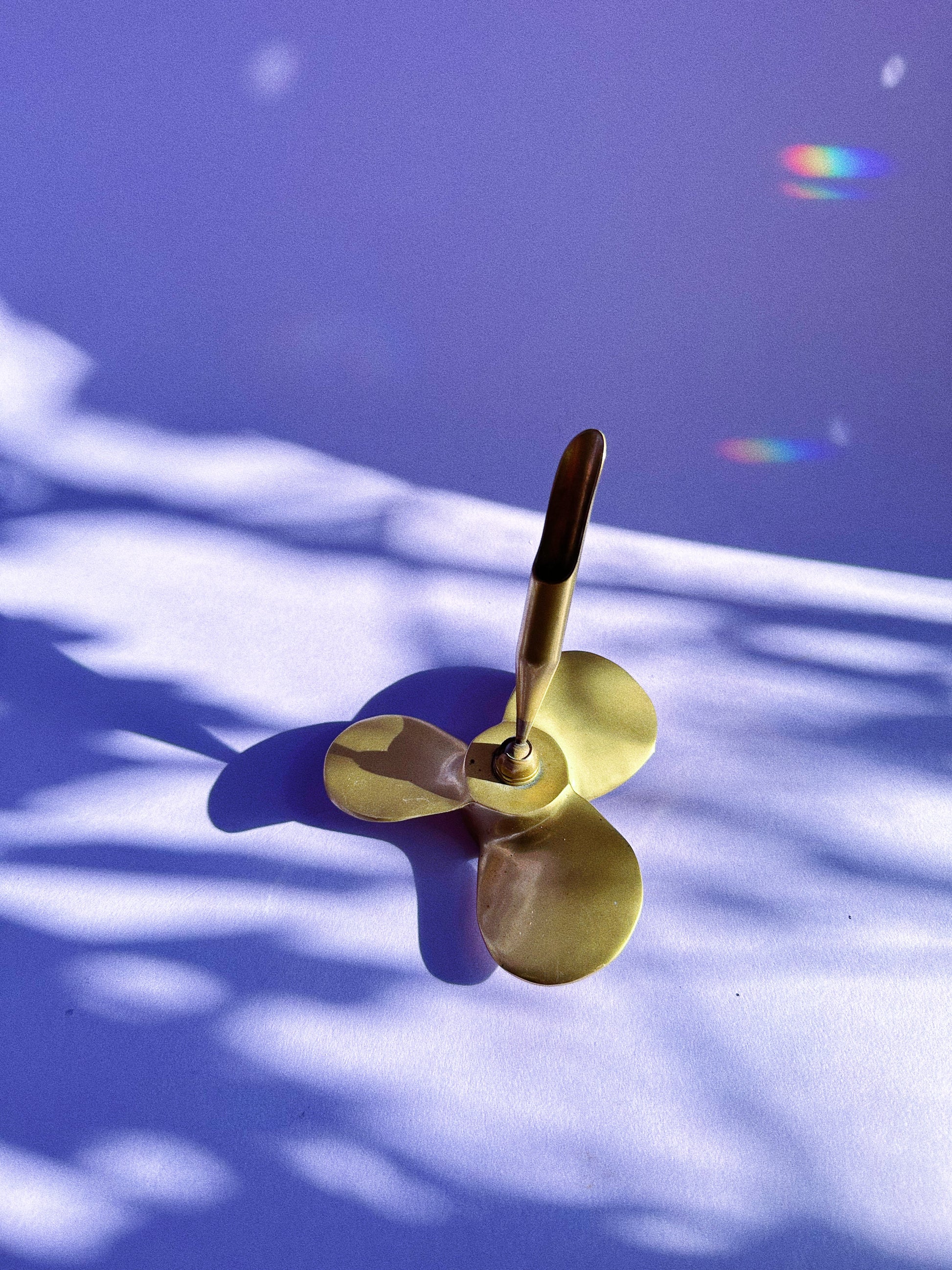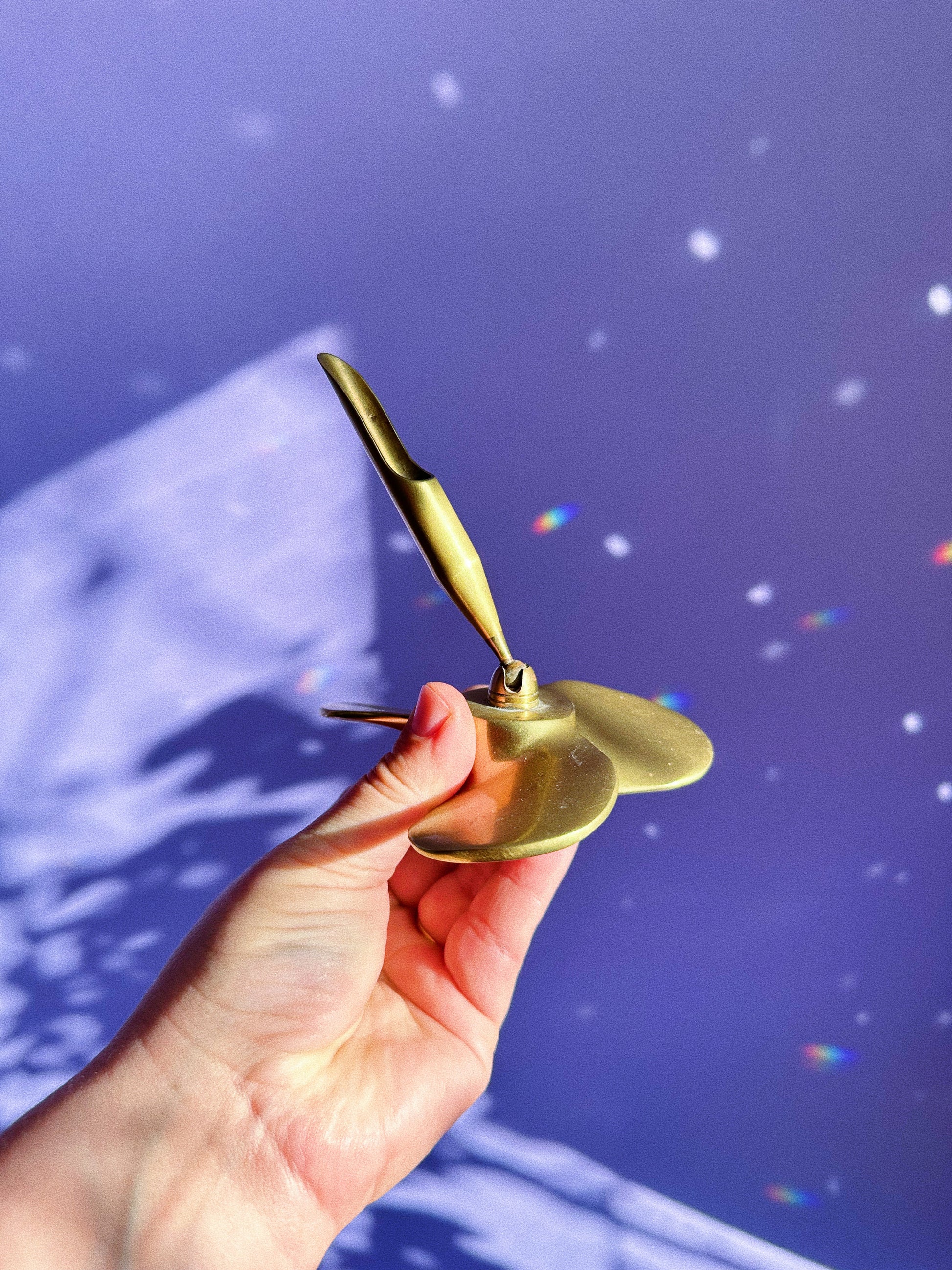 Vintage Solid Brass Propeller Pen / Flower Holder