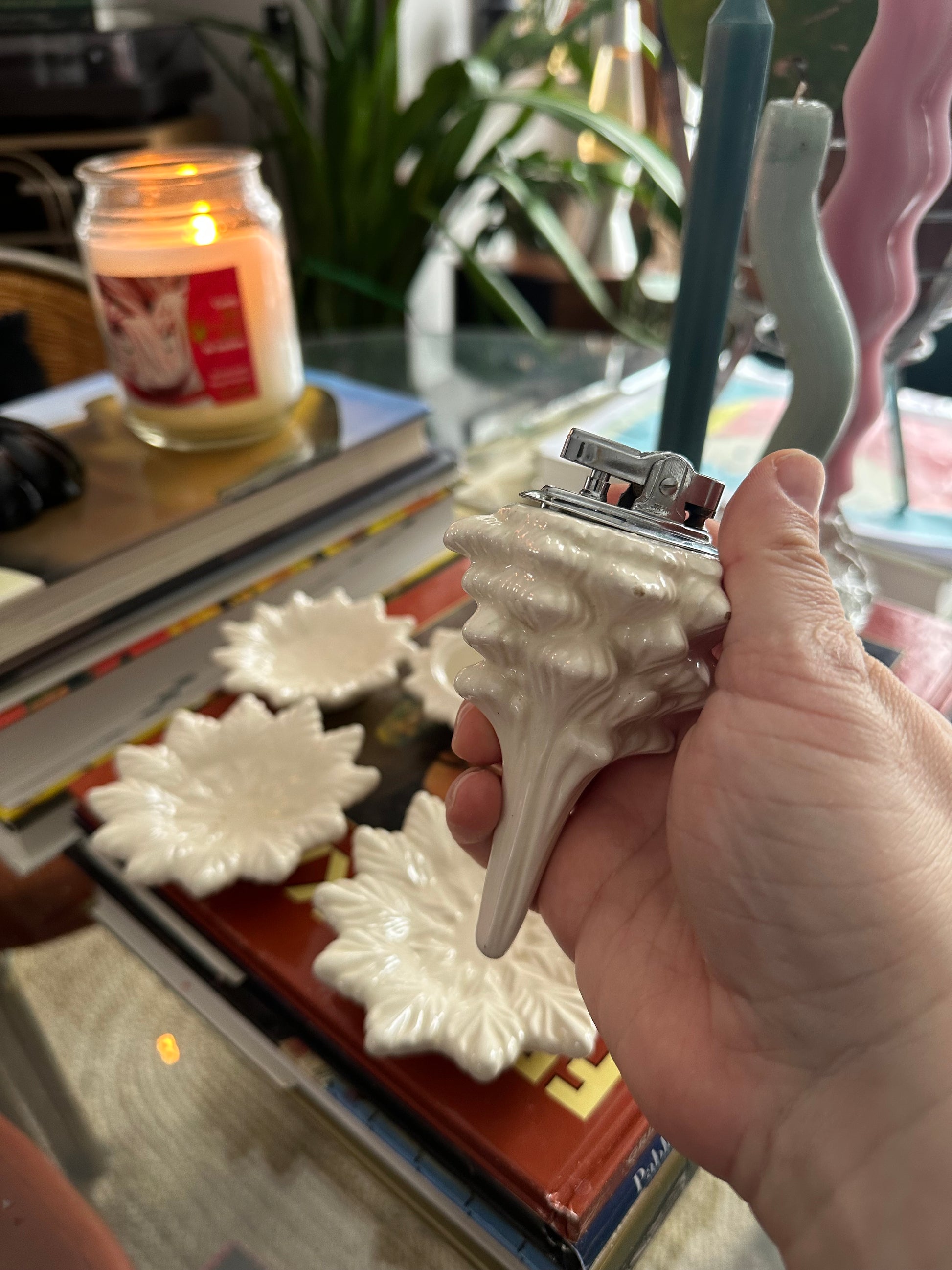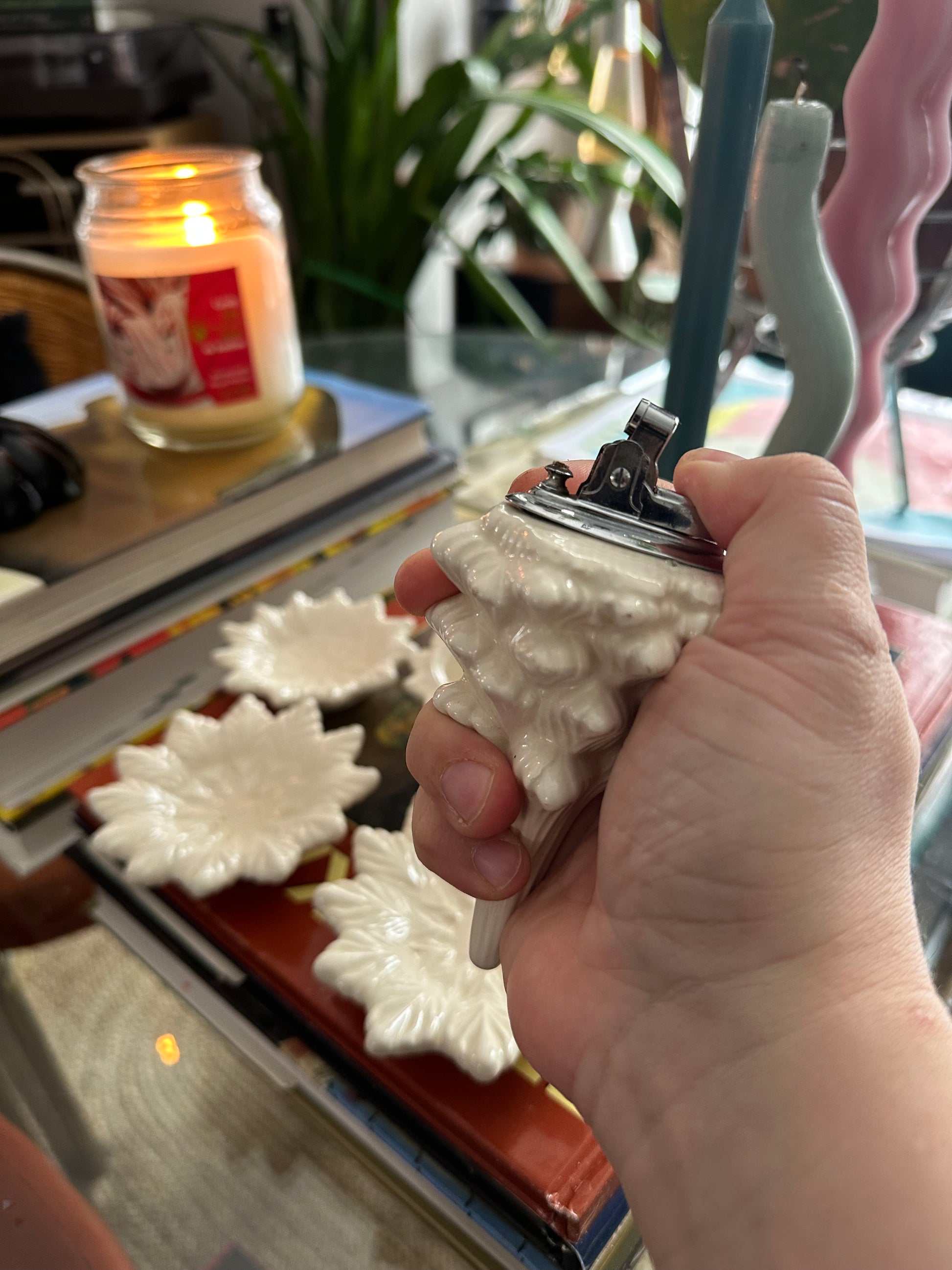 beautiful cream vintage glazed christmas tree lighter.
