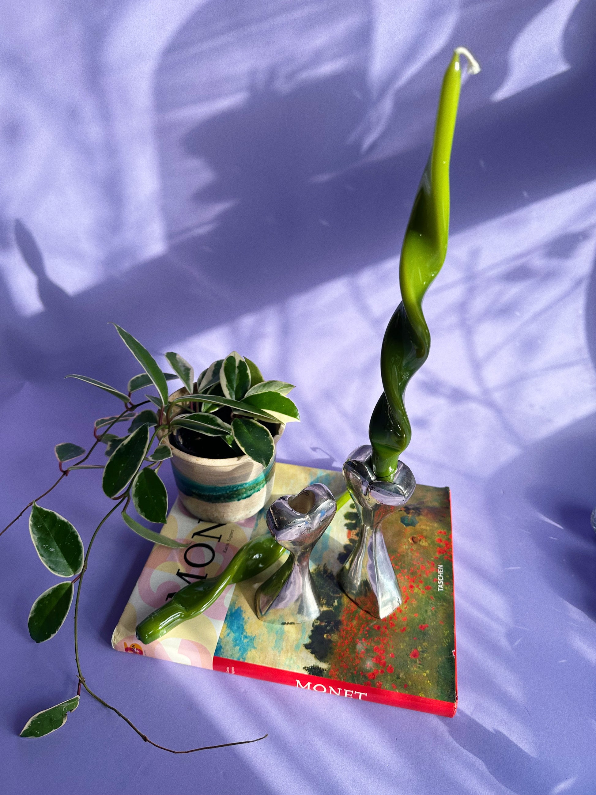 Vintage Teleflora Chrome Heart Shaped Candlesticks