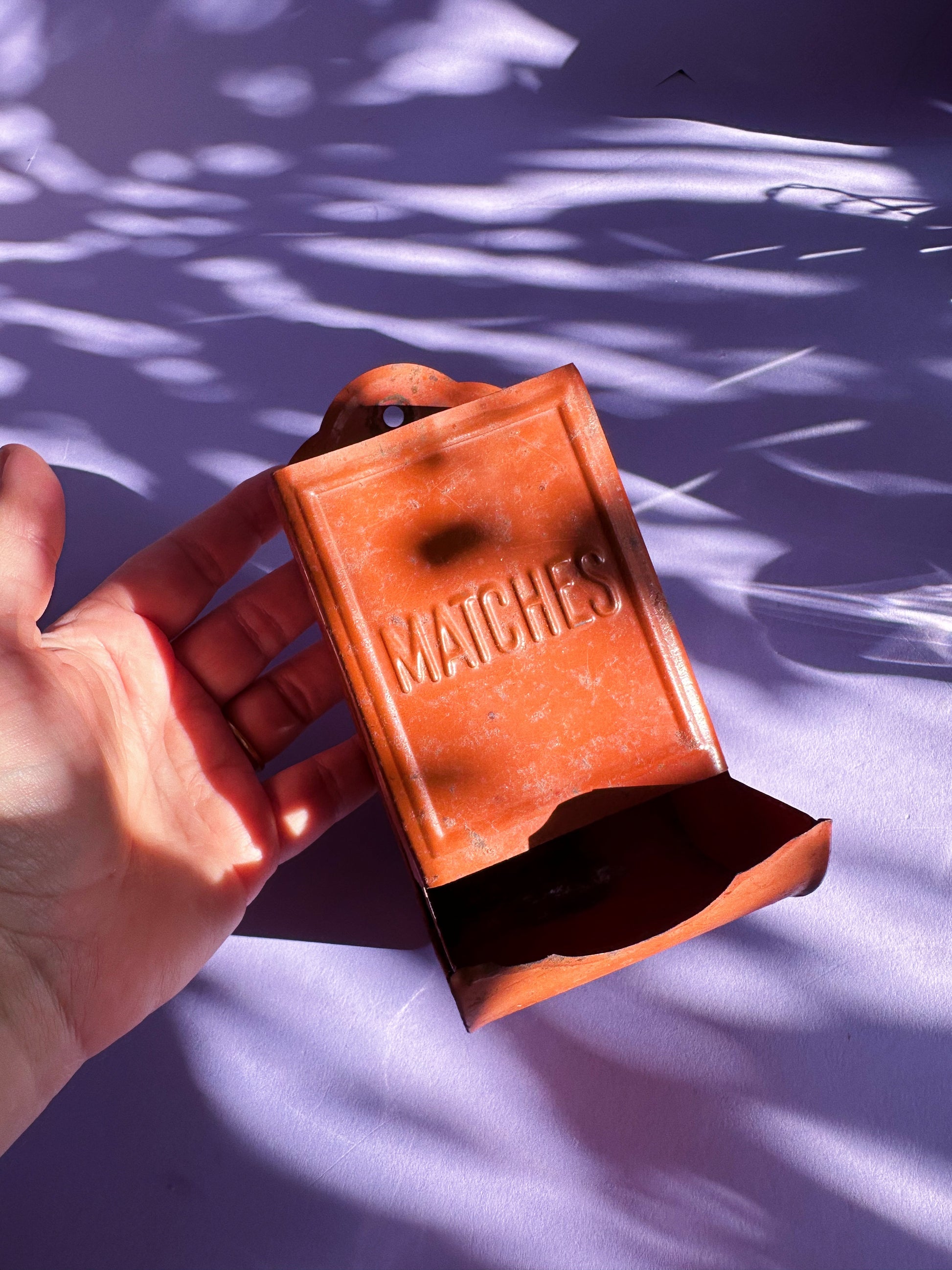Vintage Tin Kitchen Match Box Holder Wall Mount Red