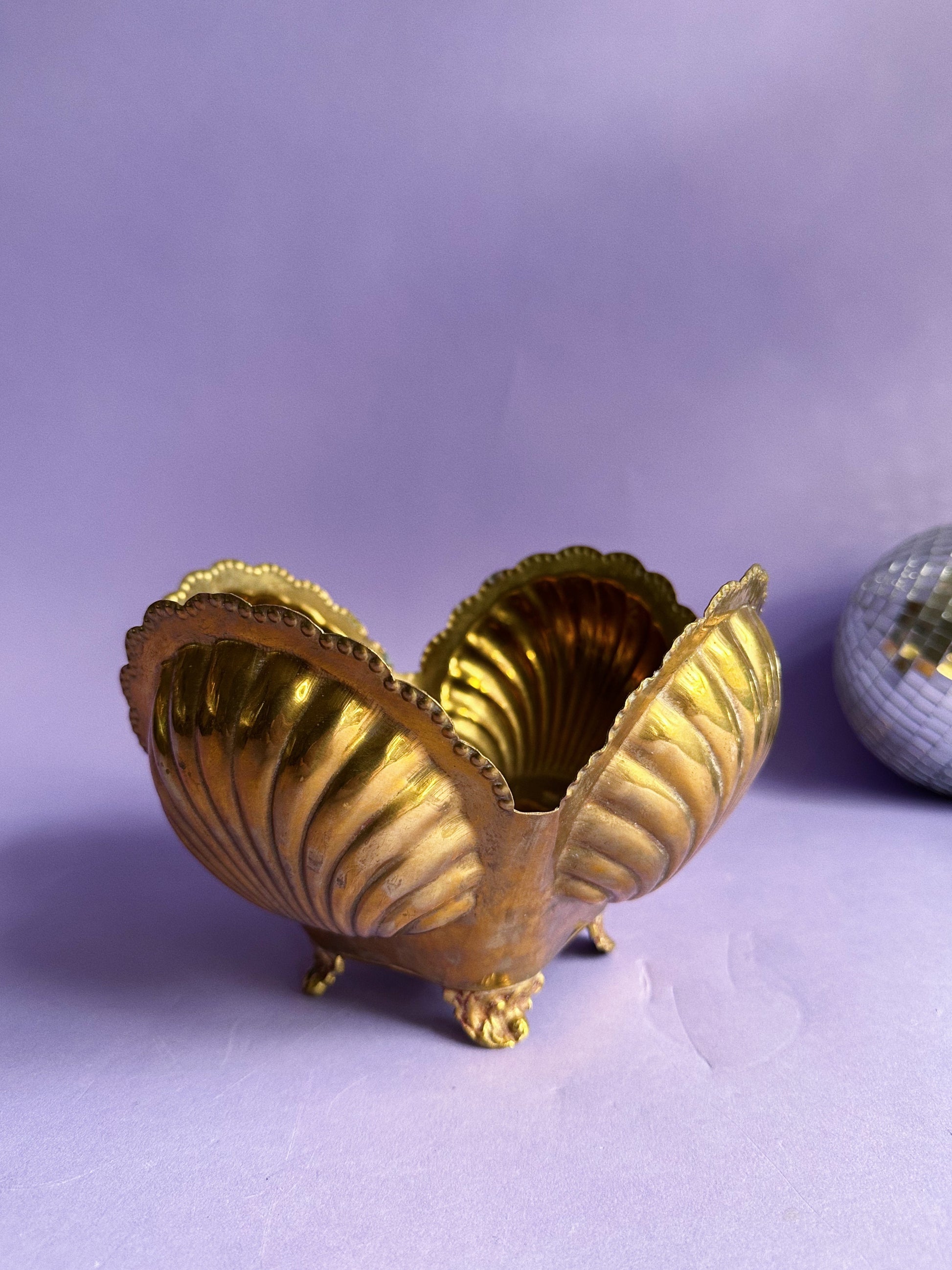 Vtg Hollywood Regency Mid Century Modern Brass Clam Seashell Cache Pot Planter